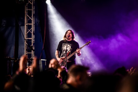 A change of tempo, energy and direction for Overthrone who are a modern metal band with tonnes of aggression on tap. A sizeable crowd has again filled the Sophie Lancaster tent and the rain has stopped temporarily but the wall of distortion that is being tossed out from the stage is getting the early morning risers by the balls and they seem to like it! A blend of clean and guttural vocals with seriously hard-hitting riffage that beats you in the chest, massive breakdowns are exactly what’s needed to get the blood pumping and energy up to get us all through the last day. A killer set for sure and a band that should be on your radar if you are a lover of all things Djent and beyond!