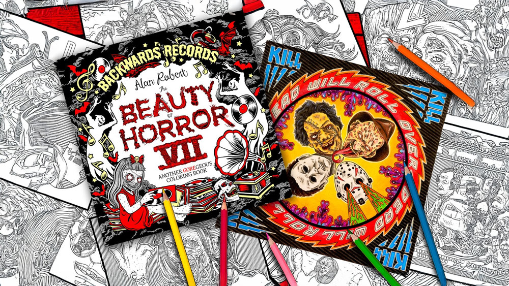 “The Beauty of Horror 7 combines my three favorite things: art, music, and horror movies,” explains Robert. “Fans have been asking me to put my spin on album covers for years, and there’s never been a coloring book quite like this one. It’s equally twisted and hilarious.”