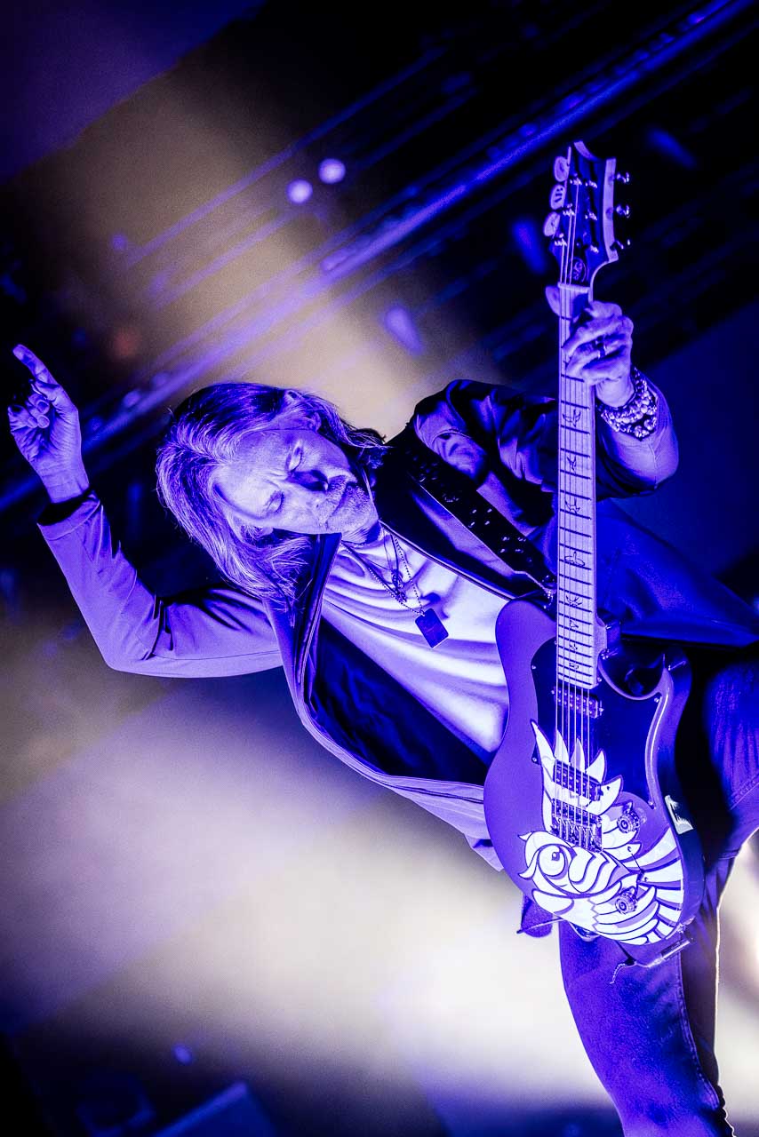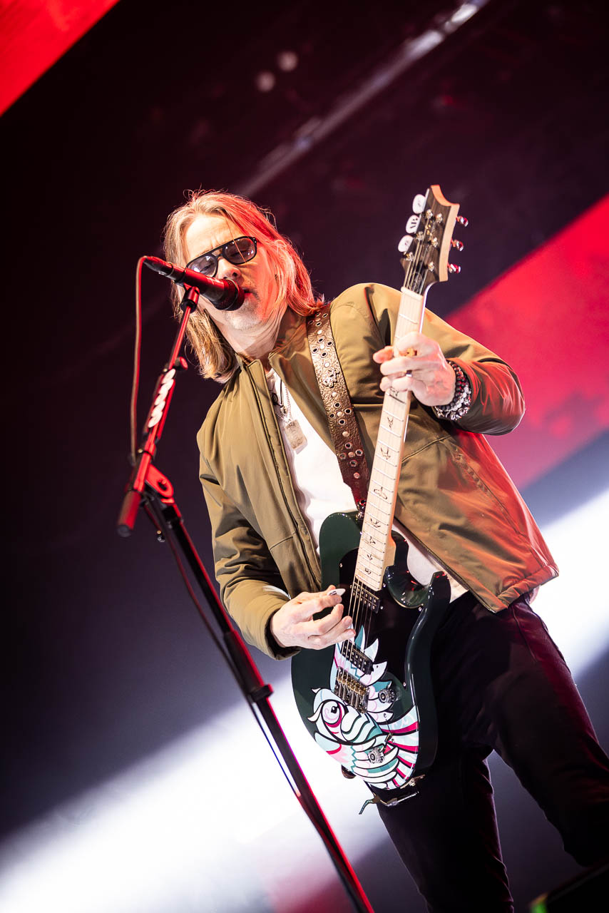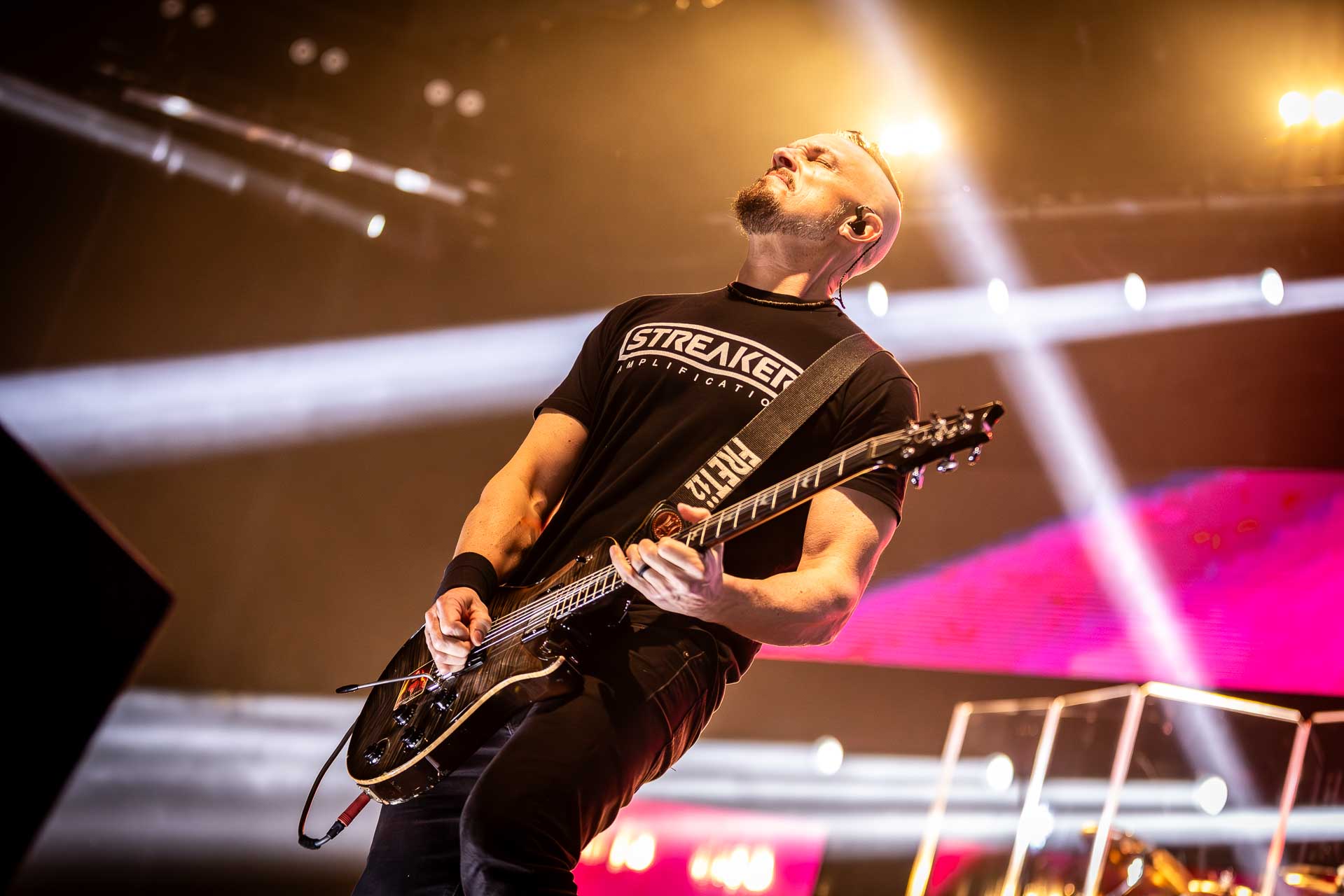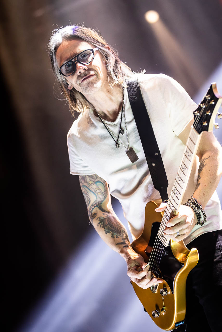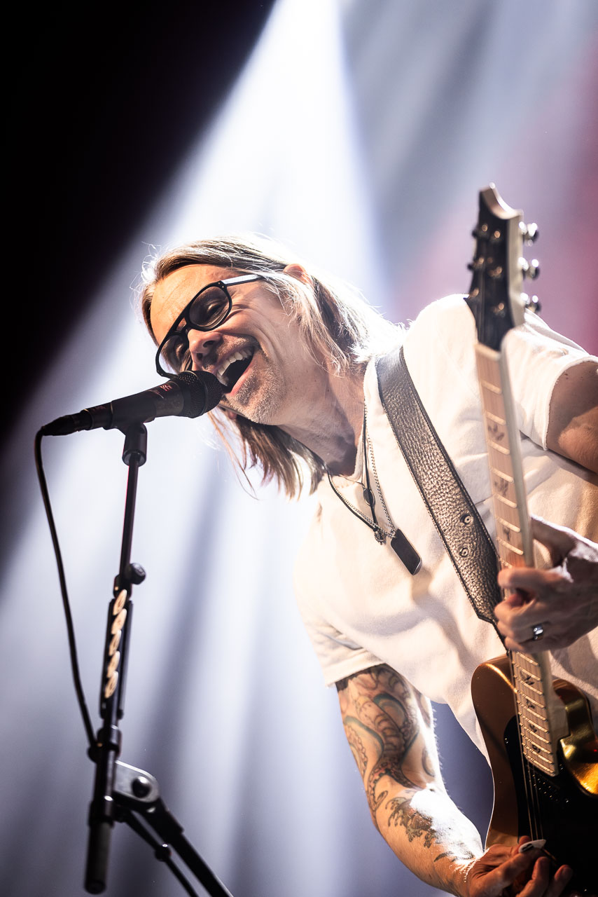 But in all seriousness, I am looking forward to catching them live after all these years. I’ve seen Mark any time he’s been in Belfast, and Myles has passed through the city twice now and even once they were in the city within 48 hours of each other playing the same venue. 9:15 and the lights drop and one by one the gents take to the stage and kick in with their self-titled album’s opening track ‘Silent Divide’, and the 3Arena goes wild! The three songs in the pit whizz by, and once out, you get to appreciate the full scale of their touring setup. The stage bathed in glorious light, video screens serving as a collage, providing backlight, all while beams of light stretch out into the audience, bathing the 3Arena in a light akin to something from War Of The Worlds! Quite the sight!