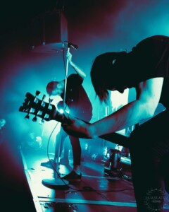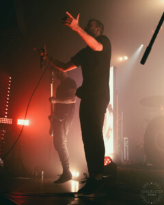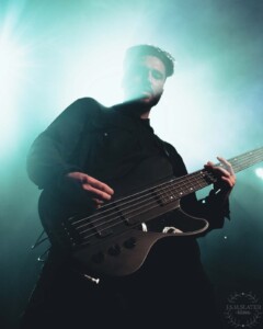 The harsh vocalist was hopping around the stage like he had an energy he had to release, once again making the stage feel much bigger even though a massive black covered drum kit covers almost half the stage ready for Annisokay. That didn’t hinder the vocalist though and his energy was just what the crowd needed to maintain the vibes for the night. Imagine my shock when the guitarist also added in some harsh vocals. His screams deeper than that of the formal harsh singer.