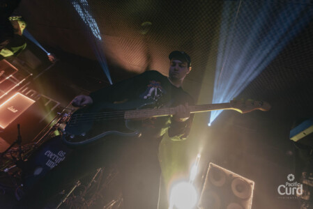 Tension is building as the stage is prepared for headliners As Everything Unfolds. The busying around of technicians tuning fluorescent guitars, the excited pre-show buzz of the gig-goers, and the scent of the dry ice being pumped throughout the room gave all the vibes of an old-school Thursday night Alternative club. There’s a succession of lights and bleeps as the band takes to stage and vocalist Charlie Rolfe directs “Let’s fucking go! Let’s get this room moving” above an inescapably persuasive bass beat. A handwritten note in the corner of a set list taped to the stage floor jests ‘Don’t need autotune when you’re a fuckin’ BEAST’ and the performance that follows, beginning with ‘Slow Down’ from the band’s latest album Ultraviolet is about to prove that this is no lie.