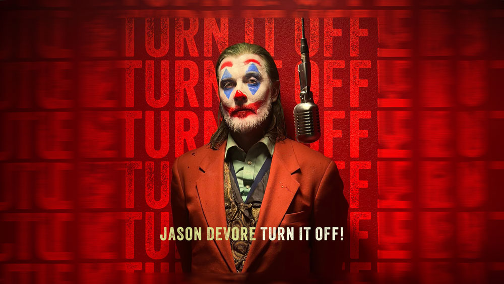 Speaking on the video, DeVore said, ”A brilliant and very talented director by the name of Eric Cannon with Illmatic Productions brought the music video to life. I had this wild left-field concept one day when I was watching the latest Joker movie with the role played by Joaquin Phoenix. As I was watching it, I started picturing my song playing along to the scene where he’s walking down the hallway with his back turned to you and then when he turns around there’s that look of maniacal vengeance but yet somehow at peace and confident in his mentally ill mind. Directly following that scene was the carefree dance scene of him on the staircase and it all came together in my head–a ‘this is it’ moment. I instantly drafted a makeshift video with the actual footage from the film with ‘Turn It Off!’ playing in the background and it blew my mind how well it fit to the imagery and the storyline. I sent it off to Jeff and Em at Double Helix Records and they were instantly intrigued. We then tied Eric into the concept and he absolutely loved it. It’s unreal to me how well he was able to make the vision come to life as a short film. Some of the most memorable things about making this video was just how much fun it was acting. I love acting. I’ve dreamt of being an actor, as well as a musician, since I was a kid–an entertainer as a whole, I suppose. Watching the big screen and cinema has always been a favorite pastime of mine, so to get to do something that combines the elements of music and theatre of sorts just made this experience so unique and awesome for me.”