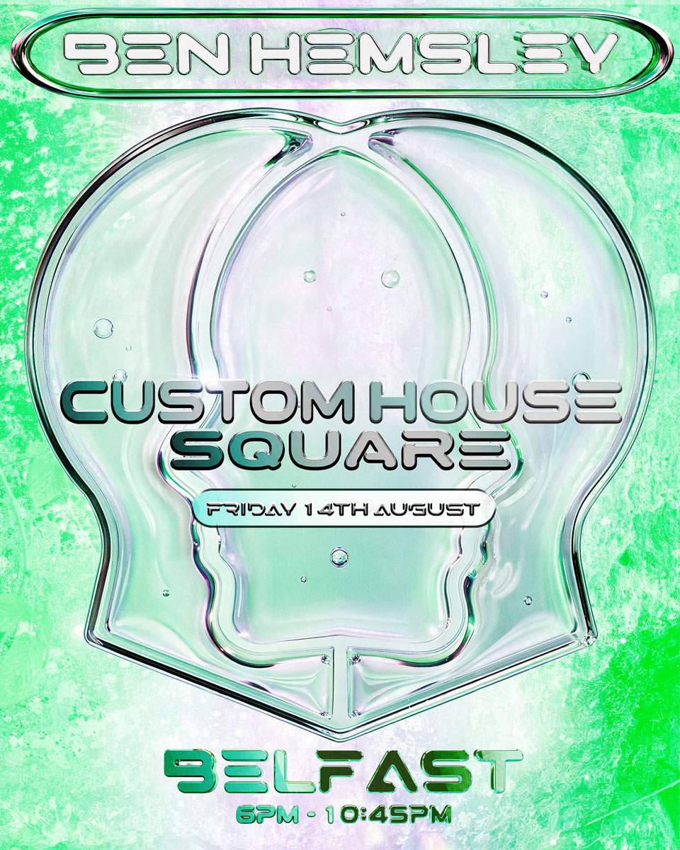 Following his sold-out Telegraph Building Show earlier this year, leading UK DJ / Producer Ben Hemsley is pleased to announce his headline show at Custom House Square, Belfast on Friday 14th August 2026 alongside some very special guests on the night.