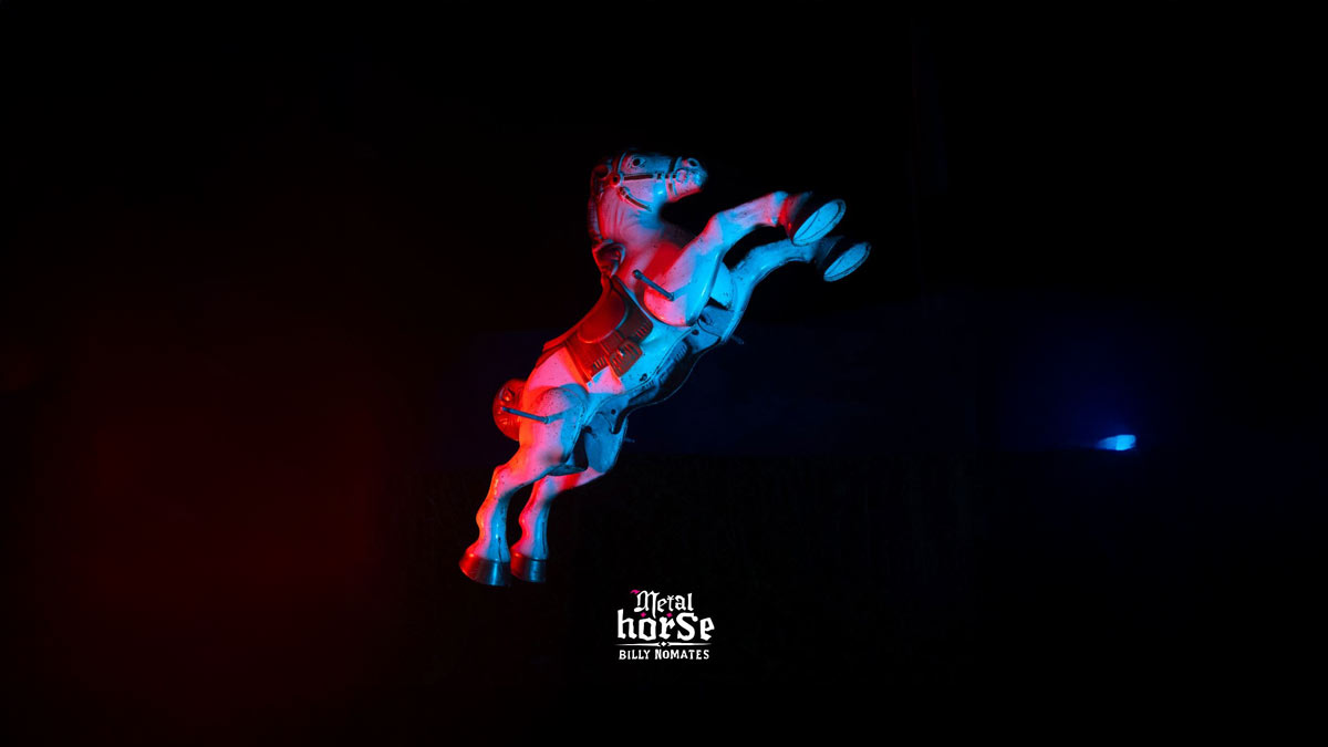 Metalhorse is Billy Nomates’ third studio release, following 2023’s critically acclaimed, CACTI, and her self-titled 2020 debut. Metalhorse is a fuller album, exploring blues, folk and piano-driven arrangements that take Billy Nomates’ stark punk sound in a more pastoral direction. Produced by James Trevascus and recorded at Paco Loco in Seville, Spain, Metalhorse is the first Billy Nomates album to be made in a studio and with a full band. Enlisting bass player Mandy Clarke (KT Tunstall, The Go! Team) and drummer Liam Chapman (Rozi Plain, BMX Bandits), who round out Billy Nomates live, the trio were booked into Paco Loco just three months after the passing of Maries’ dad to Parkinson’s. “We were so close and our bond was music,” she says of her relationship with her father. “That was my safety and protection in the world. Even in the care home, as things were getting worse, I’d visit him and he’d ask me what I was doing. I’d show him the new demos, or I’d have been on the radio. It sort of saved everything from being shit, because we had this positive thing to talk about.” Metalhorse is a concept album revolving around the image of a dilapidated funfair, representing the tumultuousness of life – risk and pleasure, danger and exhilaration. Not wanting to be too prescriptive with the meaning, the world is alluded to through sound rather than described in the lyrics, with the most vivid sensations coming through in the smallest details. “To me, Metalhorse is this crumbling fairground where some rides are nice to get on and some rides aren’t,” Maries explains. “That’s how life felt for a minute, and it still feels like that a bit now.” To that point, she also recently received an MS diagnosis that will take some adapting to. Occasionally, the unfair funfair of life will bring you into contact with someone – as on the album track, “Dark Horse Friend”, which features The Stranglers frontman Hugh Cornwell in a collaboration that came about so serendipitously it can barely be explained. For Maries, whose dad was a massive Stranglers fan and bestowed the same love for them upon her, it was a “genuinely mental” moment. Metalhorse is a balancing of extremes. Reckoning with loss, material insecurity, and trying to stay true to yourself against an increasingly unpredictable backdrop of global chaos, the scales could easily have tipped towards darkness, but the more Maries has had to weather, the more precious those smaller moments of happiness have become. Metalhorse begs the listener to find their own funfair. It might not be the loss of someone significant, or trying to find a foothold in an industry in crisis, but there will always be things that feel perilous. At the same time, you have to marvel at the lights while they’re still on. Dancing with those feelings of uncertainty and joy, Metalhorse is awash with both pain and perseverance. “Those Leonard Cohen days might be ahead of me,” she laughs, “but for now there has to be some hope, even if it’s not real. You have to tell someone that it’s going to be alright.”