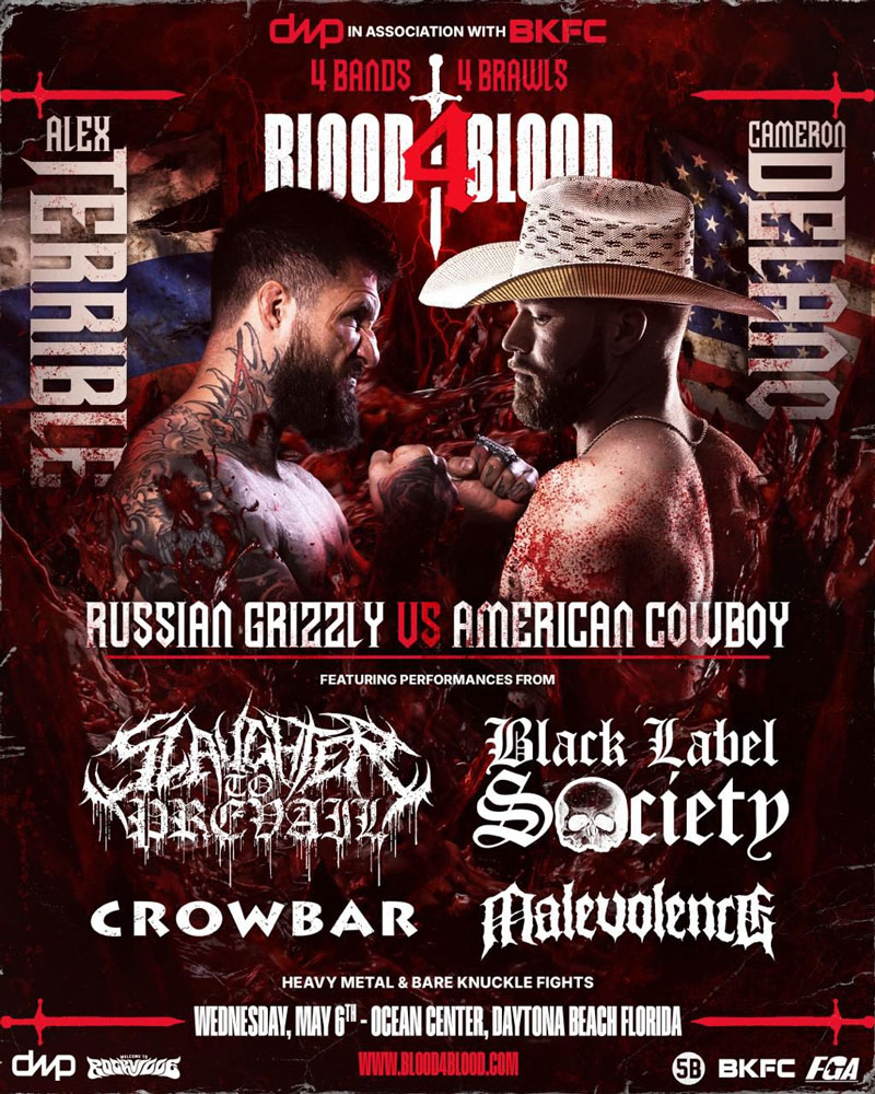 Bare Knuckle Fighting Championship, The World’s Fastest Growing Combat Sports Promotion, has partnered with Danny Wimmer Presents, The Largest Independent Producer of Destination Music Festivals in America, to announce Blood4Blood, created by Alex Terrible of SLAUGHTER TO PREVAIL on Wednesday 6th May at the Ocean Center in Daytona Beach, FL. The inaugural Blood4Blood opens the highly anticipated Welcome To Rockville hard-rock and metal festival celebrating its 15th Anniversary on 7th-10th May at the World Famous Daytona International Speedway. Alex Terrible, 1-1 in bare knuckle fighting, will fight in the main event against middleweight and PBR star, Cameron ‘The Bull’ Delano, (1-0) on 6th May as well as headline the night’s musical performances as the electrifying frontman of SLAUGHTER TO PREVAIL. Blood4Blood will also host sets from heavy music icons Black Label Society, Crowbar and Malevolence throughout this one of a kind event, merging the intensity of combat sports and hard rock into one immersive experience. Pre-sale tickets for the premiere Blood4Blood event are available now. Sign up at Blood4Blood.com to secure your priority access code and find full event details including premium and VIP options. Public on sale will begin Friday 6th March at 10:00am EST / 3:00pm GMT. The Ocean Center is located at 101 N. Atlantic Ave., Daytona Beach, FL 32118. “It is a big honour for me to finally bring Blood4Blood to life,” said Alex Terrible of SLAUGHTER TO PREVAIL. “From the beginning I wanted to create something that shows who I really am. Fighting and heavy music have always been my world, my passion, my lifestyle. To have the first Blood4Blood hosted by the biggest bare-knuckle promotion in the world and to work with the biggest live promoter in North America to build this event with me means a lot. We have four real fights and four powerful bands, Black Label Society, Crowbar, Malevolence and Slaughter to Prevail. I will step into the ring and on the stage. I give everything. This is my heart. This is Blood4Blood.” “I’ve been deeply passionate about martial arts, training in jiu-jitsu and MMA for years, so when Alex and 5B brought me this concept, it immediately resonated,” said Danny Wimmer of Danny Wimmer Presents. “They laid out a vision that felt bold and authentic, and I’m proud we’re now partnering with Bare Knuckle Fighting Championship, who bring tremendous value and energy to this one-of-a-kind event. Alongside Alex Terrible of SLAUGHTER TO PREVAIL, we’re building something truly groundbreaking: four fights and four bands on the Wednesday before Welcome To Rockville. Stepping into fight promotion is new territory for me, and blending rock’s energy with the raw thrill of bare knuckle action feels like a natural evolution. I’m grateful Alex and his team trusted me with the vision, and I can’t wait to step into this new arena…literally.” “We’re thrilled to partner with Danny Wimmer Presents and Alex Terrible to present Blood4Blood,” said David Feldman, Founder and President of BKFC. “They both share our vision for BKFC and this will be a groundbreaking event for bare-knuckle and hard rock music fans heading into the Welcome To Rockville festival.” “This is the kind of fight that forces greatness out of both men. We’re wired the same! Relentless, forward pressure, no quit in us,” said Cameron Delano. “When two fighters refuse to give an inch, it turns into a war…and I am coming to win this blood bath.” SLAUGHTER TO PREVAIL