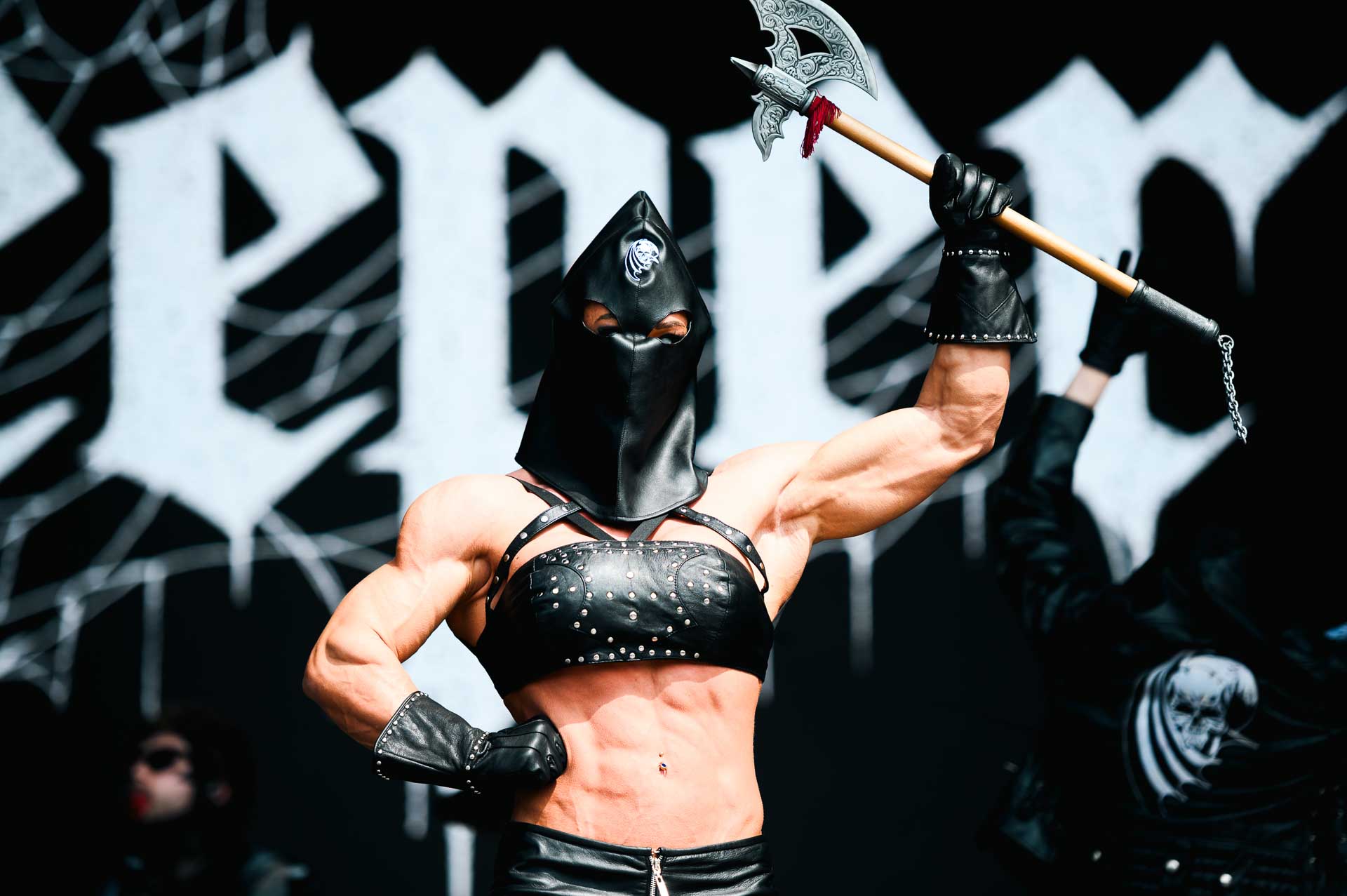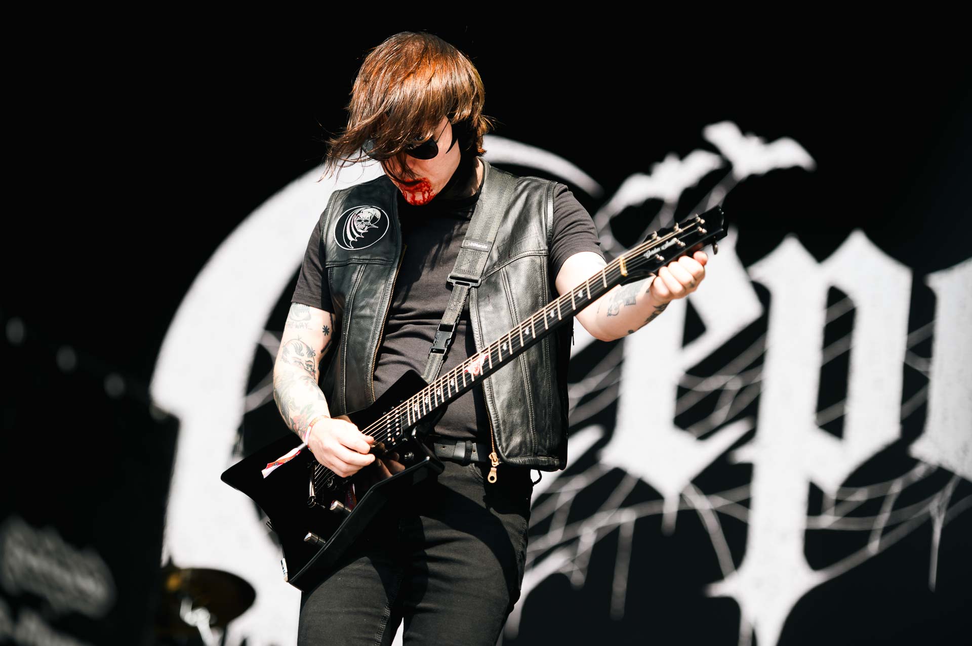 5.The great palette cleanser of the day comes with UK goth punks Creeper. With their intense brooding tracks but with gorgeous choruses, hooking melodies these guys plant their flag high at bloodstock. Showing no fear & giving the battle jacket wears a great slice of horror influenced pop sensibility. Vocalist Will Gould’s seductive tongue brings you in while keyboardist & singer Hannah Greenwood is the other side of the dark coin. Join together in their haunting melodies to give us tracks that you will be singing days after you heard them. Even getting a circle pit for their newest track “Headstones” from their upcoming album it feels like Creeper are at home at bloodstock & hopefully they return again.