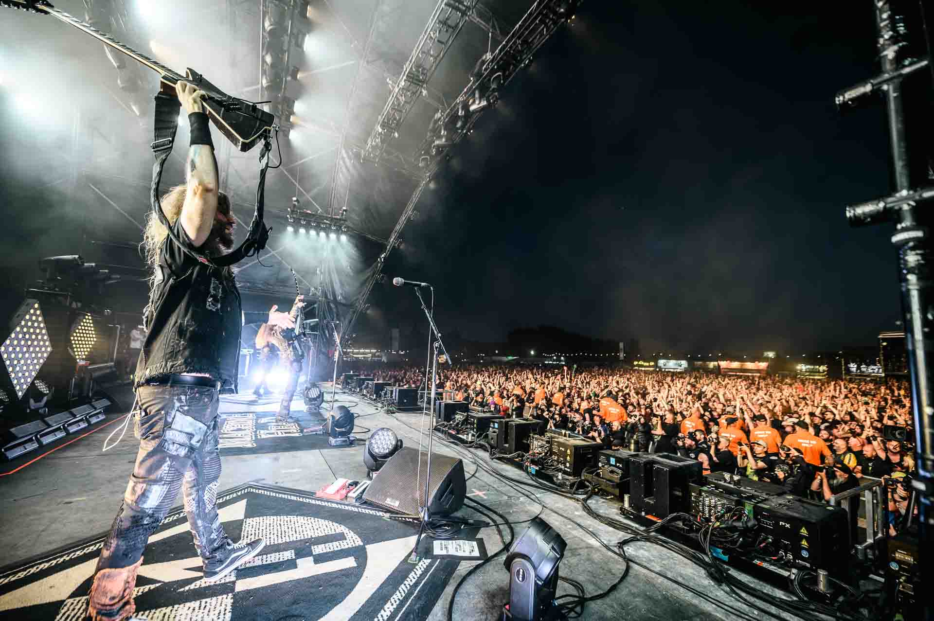 4.England’s homegrown HM2 chuggers take to the stage, even with a mini technical issue they level the arena. With their hardcore, death metal & industrial fusion they bring heavy breakdowns. But also giving us a track like “Opaline” which is one of the band’s most lustrous tracks featuring Debbie Gough’s soulful clean singing but builds into this industrial nightmare. Giving the crowd a great showcase of their fanatic songwriting & giving everyone watching something to latch onto. It’s so great to see a band who’s grinded for the last few years get a midday slot on a big stage & draw such a huge crowd.