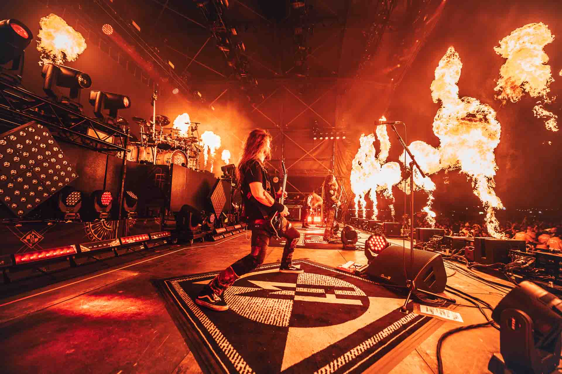 Right from the rip & opening track “Imperium” you can feel something special is going to happen in the air. As the sun slowly sets & frontman Robb Flyn puts his middle fingers up & says “Sing with me bloodstock.. Hear me now, Words I vow, No fucking regrets..” the festival erupts.
