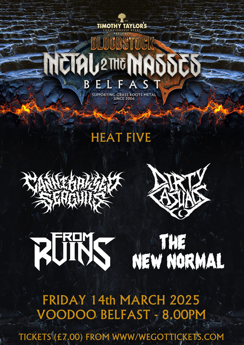 Congratulations to From Ruins and Dirty Casuals on qualifying from last night’s Metal 2 the Masses. NI Heat 5. The 6th and final heat ahead of the semi-finals is this Friday, 21st March. Please come out and support your local bands and local music, the industry is a cluster at the moment, and we need people at venues, packing them out and making a stand for local artists and venues alike to keep this all going. Be there or be square!