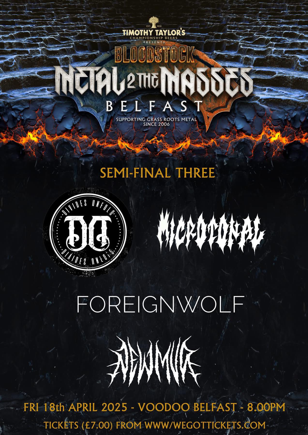 As I set off into the sunset, I honestly could not call that. I know what floated my boat, and there were a lot of positives about all four bands, very different styles, all well-executed, but how will the voting go? As it turns out, a surprising result! As James said, Congratulations to Microtonal and Divides Unfold on qualifying from last night’s 3rd Metal 2 the Masses NI semi-final. The Grand final line-up is now complete, and I’ll be posting details on that shortly. Friday 9th May for that one, Voodoo Belfast