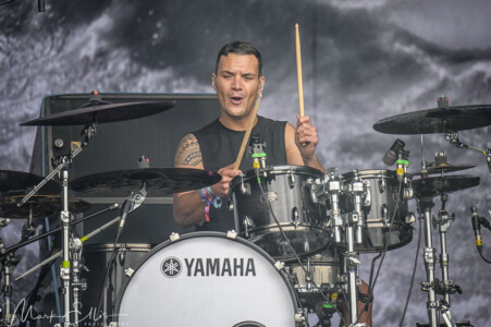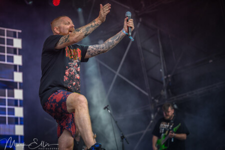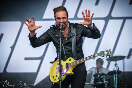 It’s time to switch things up again as Royal Republic take over the arena this time and arrives with fanfare. Certainly nowhere near as heavy as many of the bands on the bill, they have still drawn an impressive crowd that continues to grow throughout the set. It’s no surprise though as their infectious feel-good vibes just make you want to dance with them. Very quickly they have the crowd clapping and singing along with their catchy melodies. On stage, the band are clearly here to have a good time as they run and bounce around. Frontman Adam Grahn makes sure the crowd are matching their vibe as he directs everything from clapping to jumping to singing and from the front to the back of the arena he achieves his mission in having everyone involved. His energy on stage is to another level while his charm and charisma hold your attention to the point that even the rain began, not a soul left watching this performance. Royal Republic are a fantastic party band that is guaranteed to put a smile on your face.