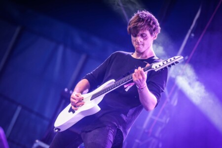 InVisions take the stage just after 3:30 pm and this day is flying! It is cool to catch these guys ahead of their UK + Irish tour dates with Polaris later this year and I have to say I am looking forward to it even more now, Invisions are savage! I totes have guitar envy as both lads are wearing Aristides Guitars . Not that I get guitar envy very often but it hurts today! These guys are absolutely slamming, a monstrous sound coming from the PA create has onlookers walking by scrambling for a place in the tent, the hefty breakdowns, the gnarly vocals, all of it works on a stage of this size, they don’t look out of place whatsoever and the crowd are gobbling it up, Invisions are taking it to another level and shooting out across the bow that the bar has been raised! Killer set, killer band.