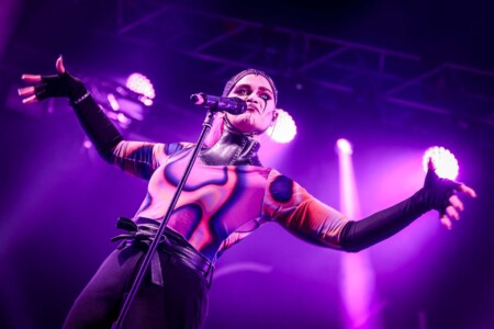 We have been putting press out for Skynd from both sides of the pond for a while now and It was finally great to see why this band is so highly rated in the flesh, a crime engrossed duo they tackle hard hitting crimes in their songwriting and have a flare for the dramatic to say the least, a blistering display of visual, sensory explosions all fused together by magical vocals and melodic earworms that you could see the crowd singing along to, despite being from the other side of the world these musicians were at home on the Sophie Stage closing off the first night of BOA 2023. Frontwoman Skynd brings the drama to the performance between soaring vocals, stunning visual imagery, and constant flare in her performance you cannot take your eyes off her, multi-instrumentalist ‘Father’ adds an additional dimension to the live performance and the BOA crowd are gobbling it up.