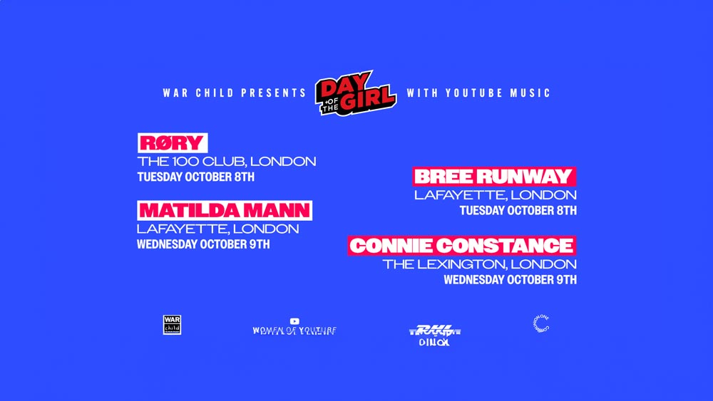 Lizzie Dickson, Head of YouTube Music UK said: “We are delighted to be continuing our partnership with War Child for their annual Day of The Girl gigs. We endeavour to celebrate and champion women artists on and off our platform year-round- so it’s a privilege to be part of this series of events which showcases exciting new female talent as well as raising critical funding to support girls and young women around the world.”