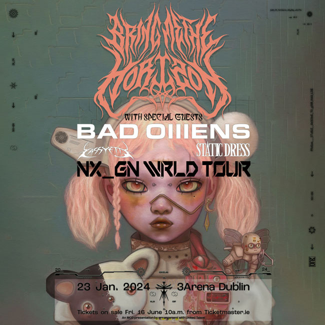 Bring Me The Horizon are riding the waves of an explosive headline performance at this year’s Download festival. The band took to the stage on Friday in front of 100k euphoric fans and played a storming set that included new singles ‘LosT’ and ‘AmEN!’. The band also announced a brand new studio album, entitled ‘POST HUMAN: NEX GEN’, which is due for release on September 15th via Sony/RCA and a UK & Ireland Arena tour in 2024, which includes a show at 3Arena Dublin on 23rd January. Tickets priced from €71.00 go on sale Friday 16th June at 10 am from Ticketmaster. Special guests in Dublin will be Bad Omens / Cassyette and Static Dress.
