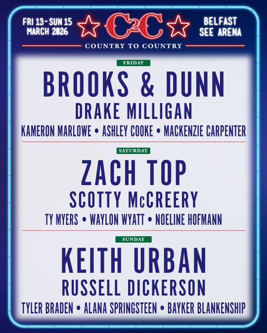 Since 2013, C2C has become the premier destination to see the world’s best country artists and future stars outside of North America. 2026 will see another host of incredible artists perform at The O2, London, The OVO Hydro, Glasgow and, The SSE Arena, Belfast.