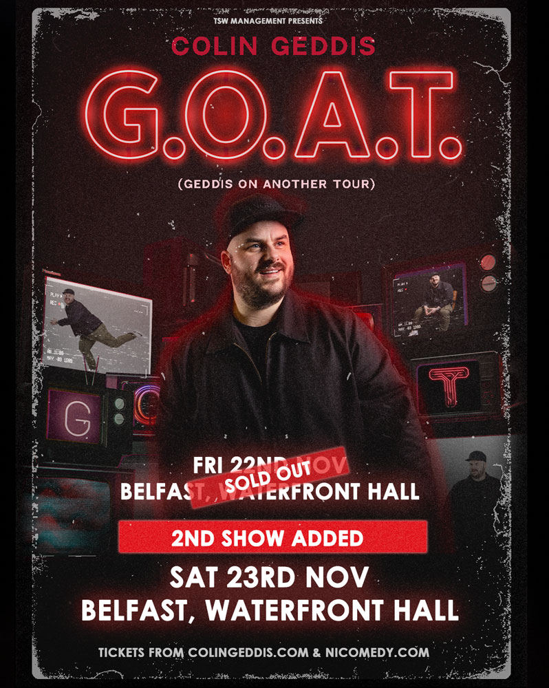 Colin Geddis announces his brand new stand up show G.O.A.T. (GEDDIS ON ANOTHER TOUR) will hit the road this Autumn with a massive UK & Ireland tour!