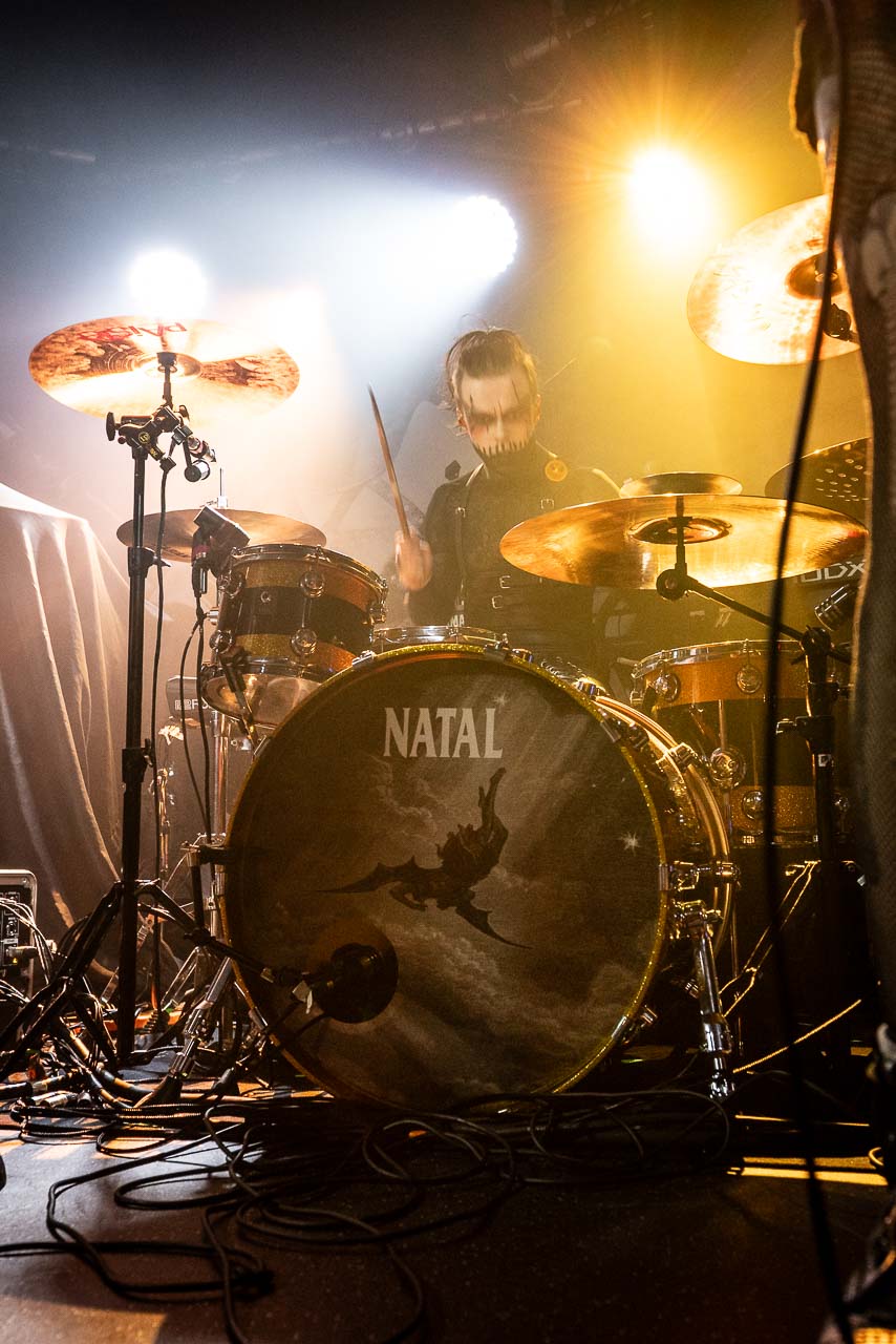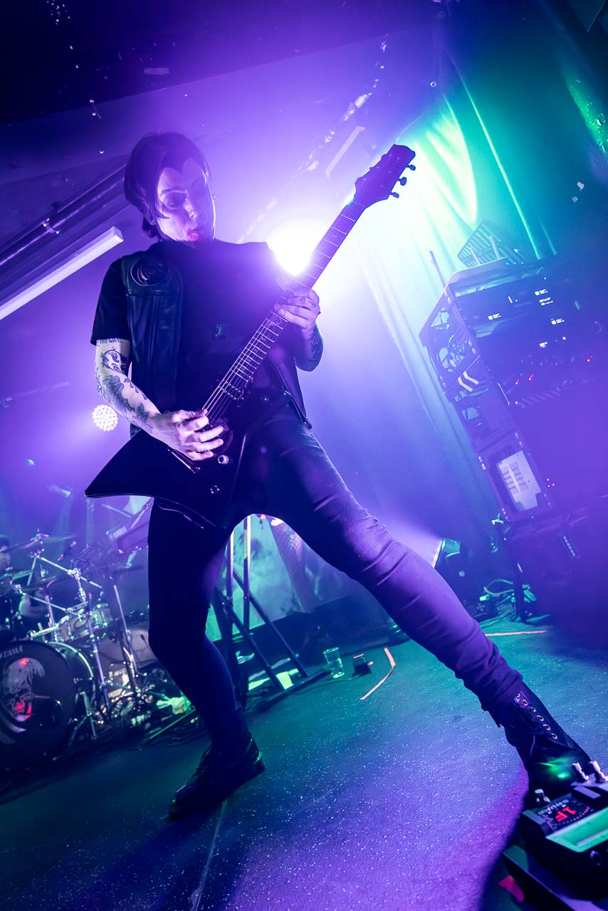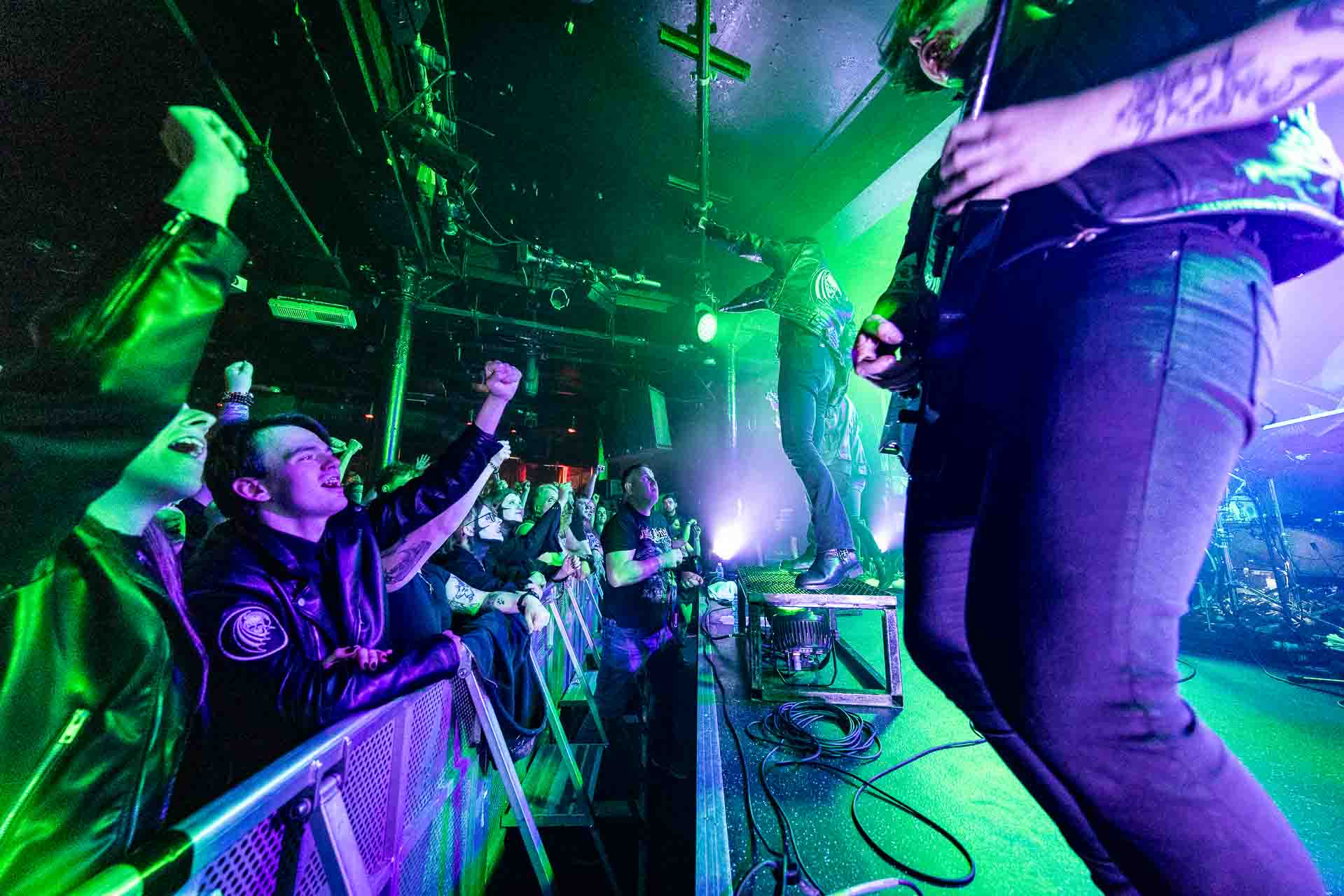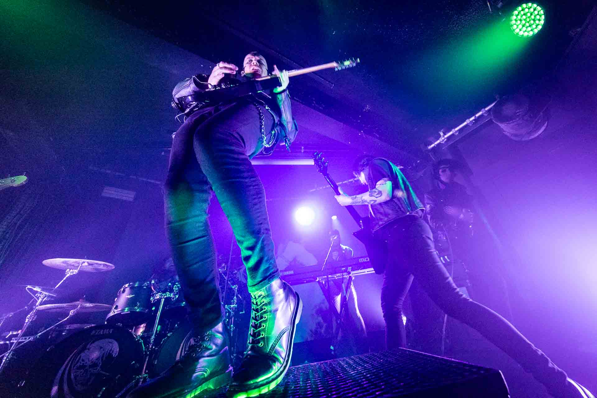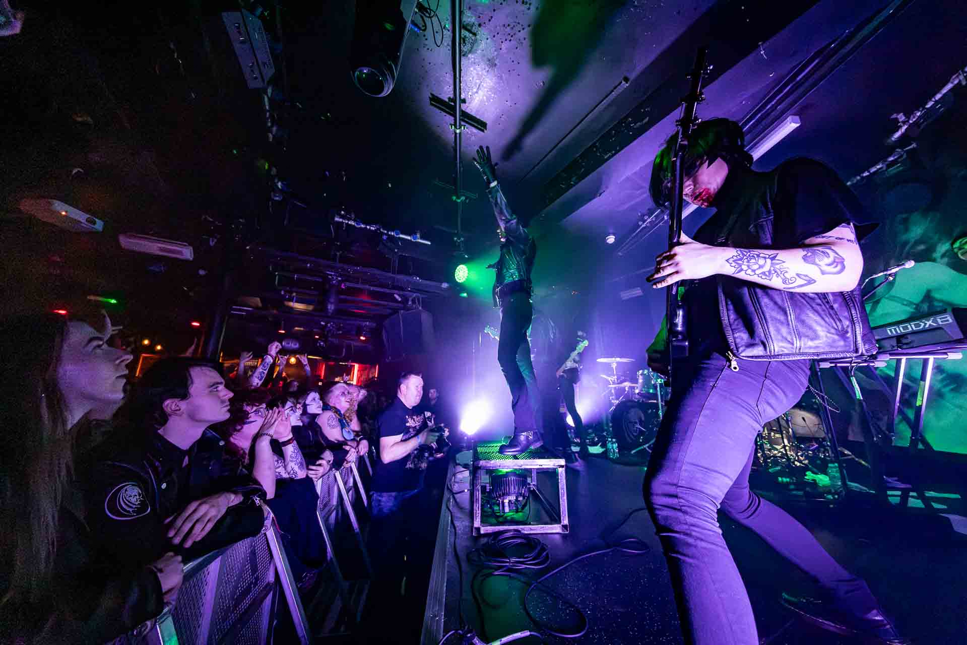 The music is rocking, we knew it was, and they deliver it on the live stage with an abundance of showmanship. You get lost watching it all unfold right before your eyes, every band member plays their part in creating a show that is part magnetic and part musical genius. Everyone plays their part so well, pulling the fans into the show along with the band so that those who crave that level of attention can feed their dark, dark souls to their hearts’ content. We had keyboardist and vocalist Hannah take to the front to show off her skills and change the dynamics on a whim. Everyone will have their own idea of what their perfect setlist would be, but judging by the smiling faces all around the room, there do not seem to be any complaints here. it is a SiZeAbLe setlist! I can see it on the floor, and it looks like there are around 18 or 19 tracks to get through; it will feel like Christmas here for the band’s devotees. The blistering guitar work, with solos cutting through the mix and the interchanging guitar players taking centre stage on the raised platform, allows everyone to dig in hard when they need to. The bangers are dropped like power kegs, ‘Headstones’, ‘Spook & Mercy’, ‘Pray For The Night’ all met with wails of delight, the band constantly intercating with those lucky enough to be upfront, close and personal with their heroes.