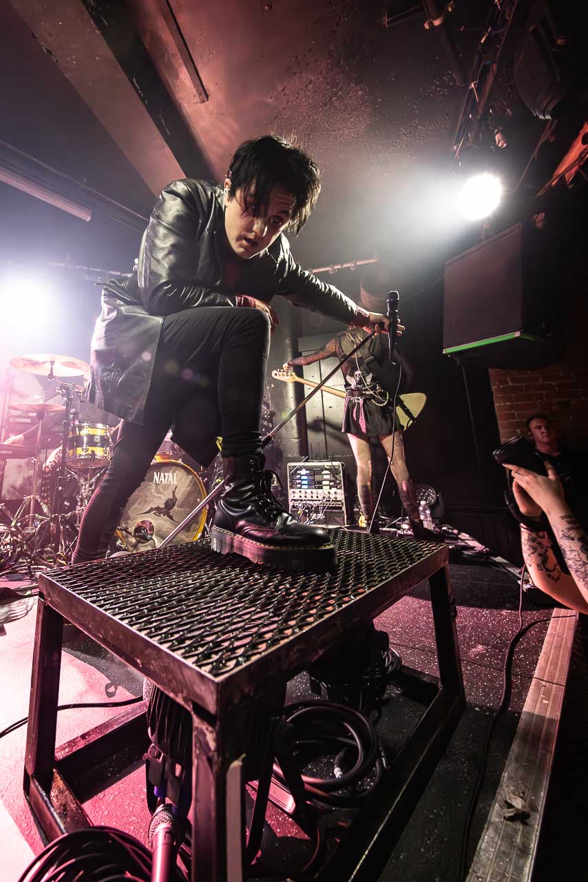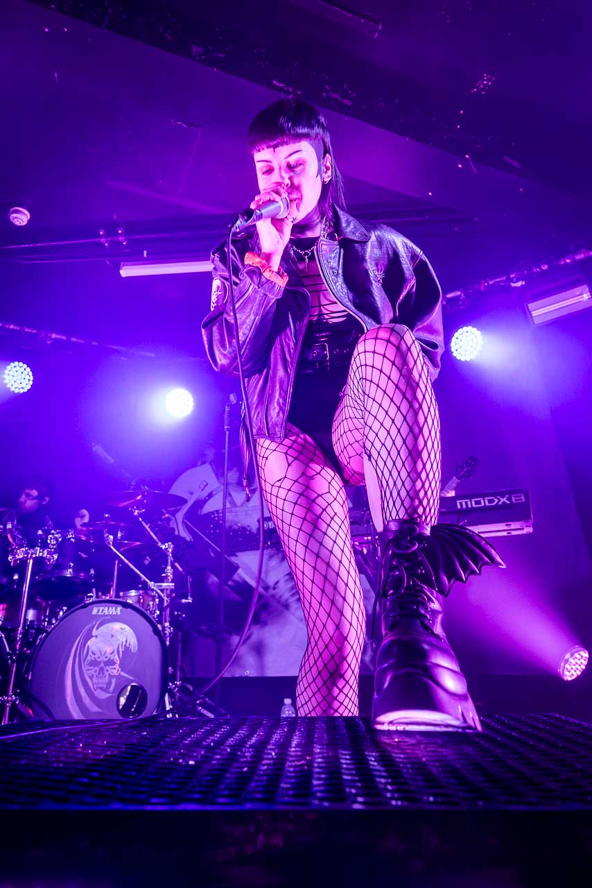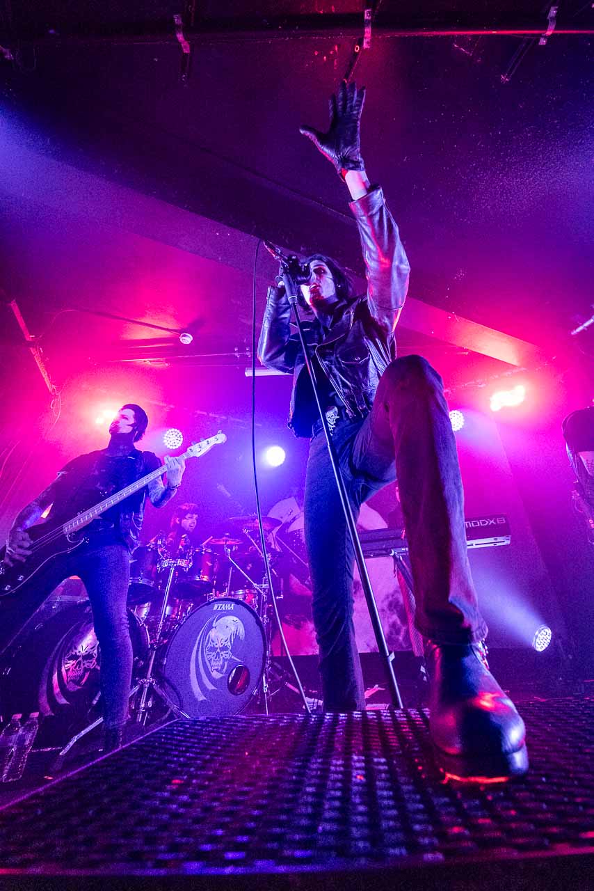 So, the stage was cleared, and at 9 pm, the lights dropped to an almighty roar as Creeper made their way onto the stage. Now you know you’re not in Kansas anymore, one look around the room tells you something pretty special, pretty unique is going down tonight. As the band whip their way into the set and their opening number’ Mistress Of Death’, The Limelight is whipped up into a frenzy! Right away, you get the energy in the room, the fanatical nature of these fans, the energy from the band that feeds the fans and the fans’ electricity that feeds the band; it is totally symbiotic, and it is a beautiful thing to see. As the band races through ‘Blood Magic’ and ‘Lovers Led Astray’, you can’t help but appreciate the vibe that Creeper brings to the live stage; it’s way beyond what you normally get with your traditional rock bands. I have been moaning for a long time about the lack of theatre and drama in the rock and metal world in 2026. So many bands turn out and go through the motions with their live shows, but not Creeper. It’s all drama, nuances, atmosphere, and personality! What’s not to love?