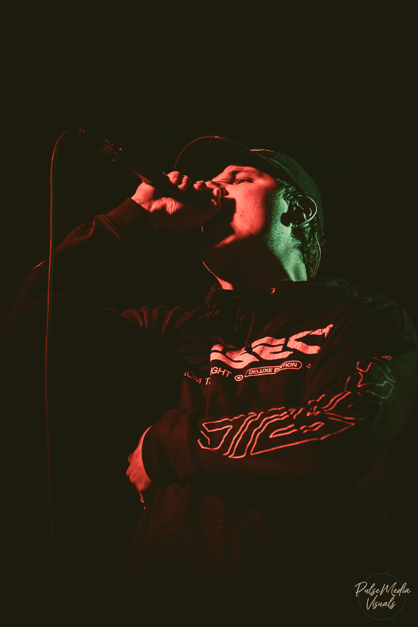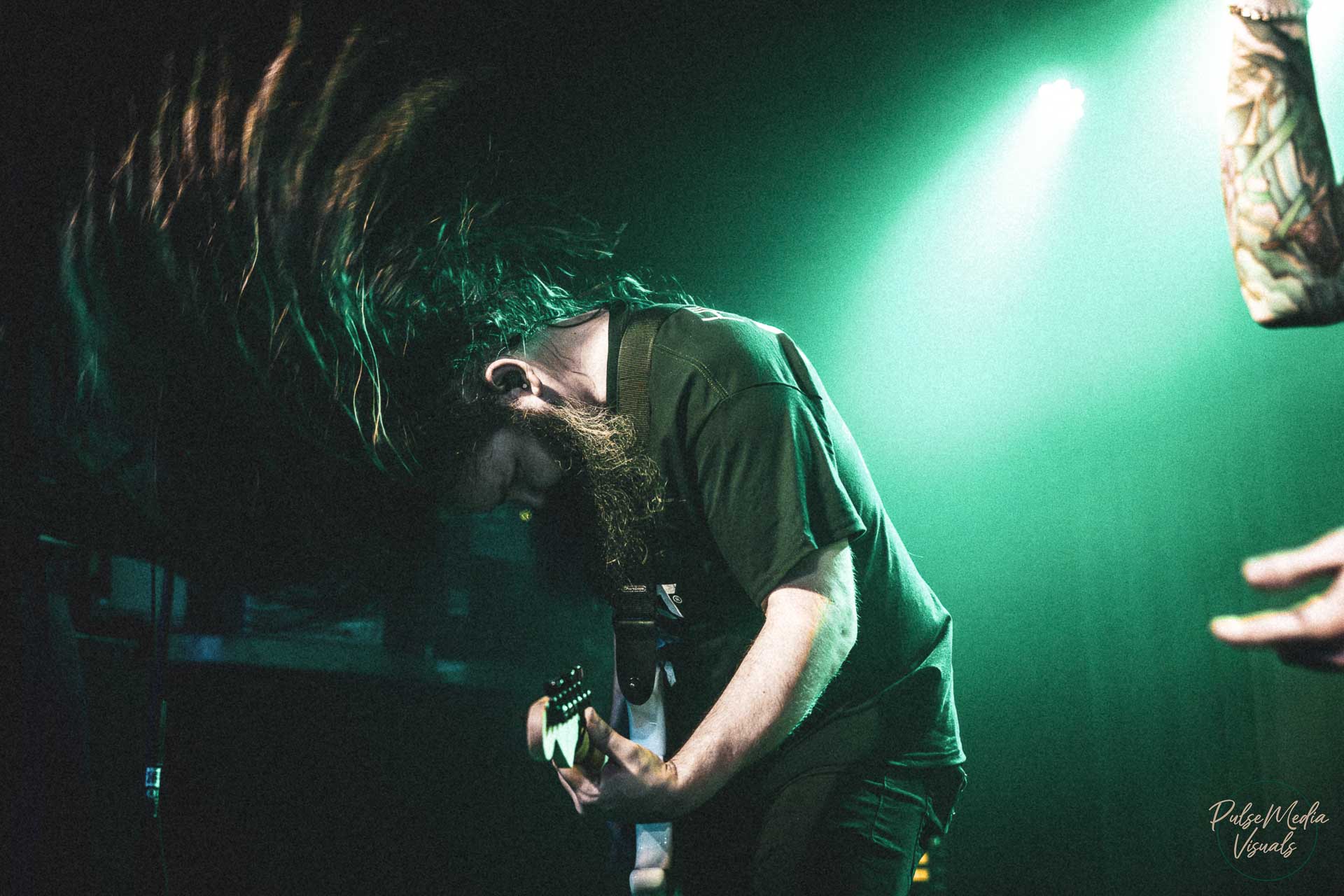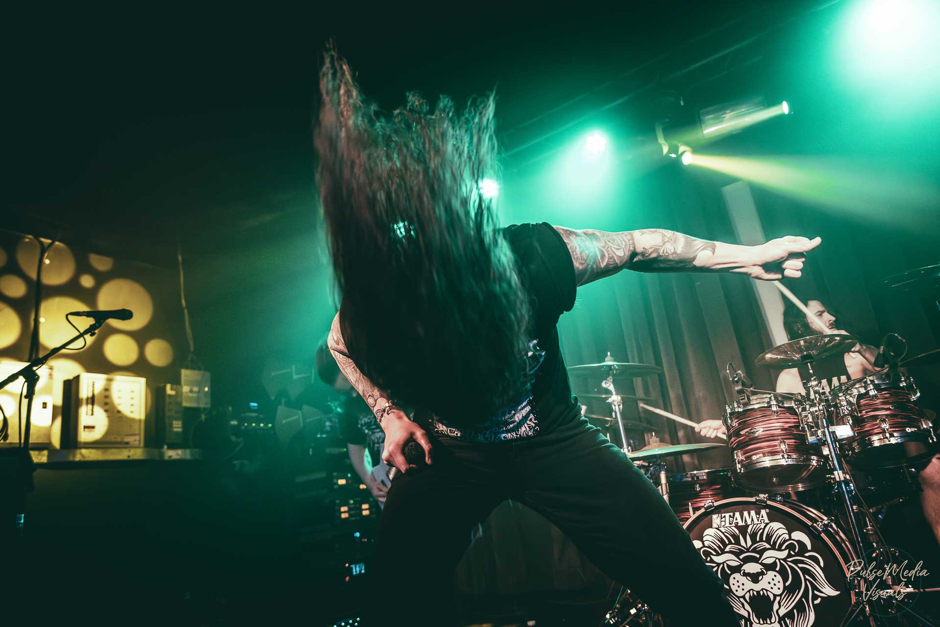 The first band of the night, Disect, hit the stage. The energy in the room didn’t pick up at first, but it didn’t stop the band from giving it their all. Ridiculously heavy track after heavy track was blasted through the amps on stage into the crowd, with the band doing everything they could to get people moving. After a few songs, the room was slowly filling up, and people were beginning to feel the music much more. After a couple of songs, the band addressed that they were actually a member down too due to an unfortunate case of sickness that had hit the touring party, leaving them to play without the bass live, which unfortunately did leave a noticeable mark on the sound, but I’ve got to give credit where it’s due. With everything that was very clearly going wrong with the show, Disect gave it 110% still and looked the entire time as if they were still having a great time despite the setbacks. I can always respect it when a band handles issues like this without affecting those there to see the show. The band’s sound blended modern metalcore with elements of the genre’s more extreme sides, with many similarities to Thrown. I highly urge people to give them a shot if you’re a fan of chuggy, breakdown-heavy metalcore.