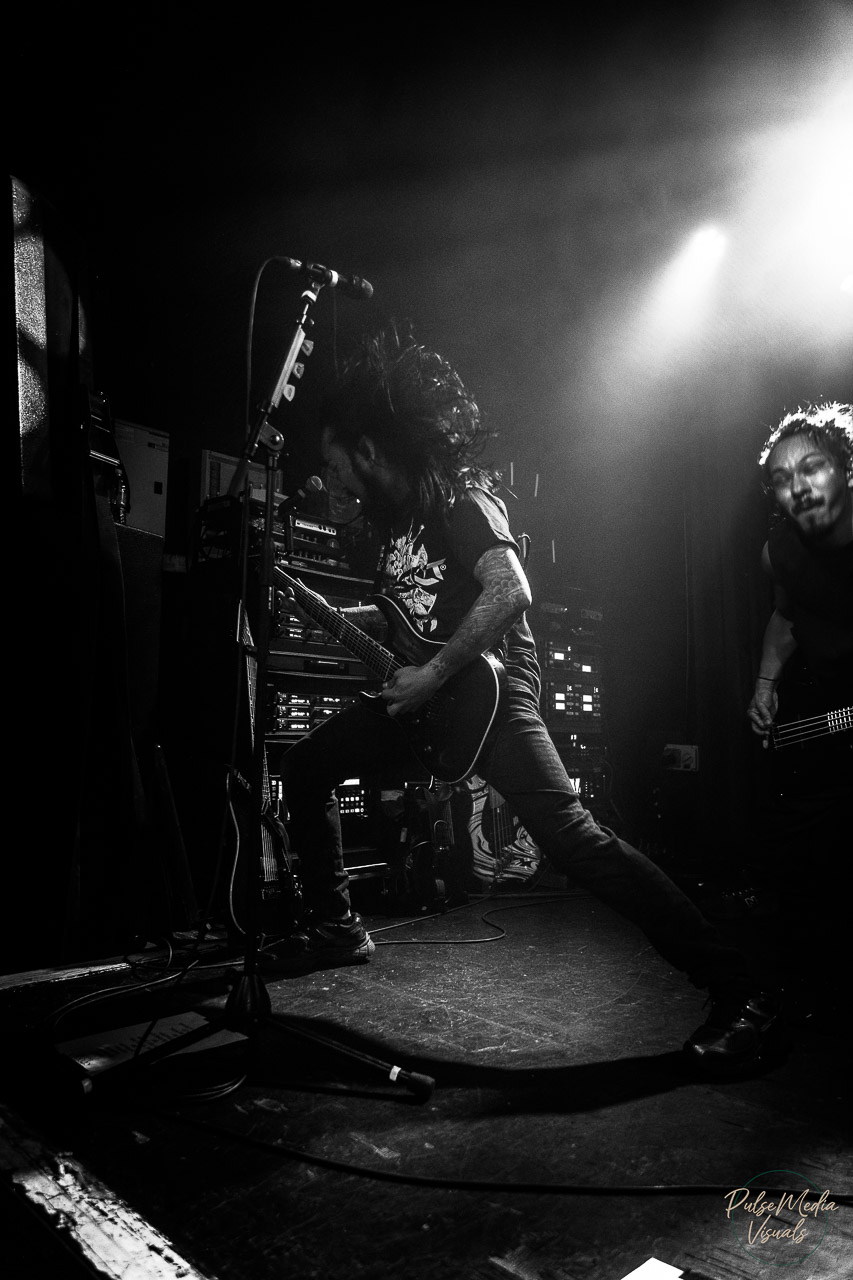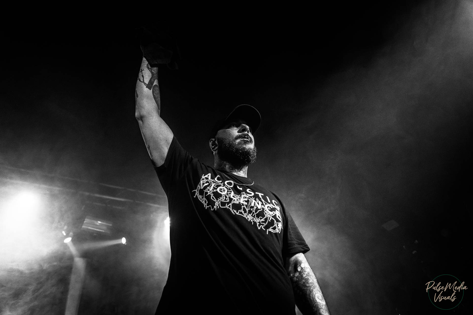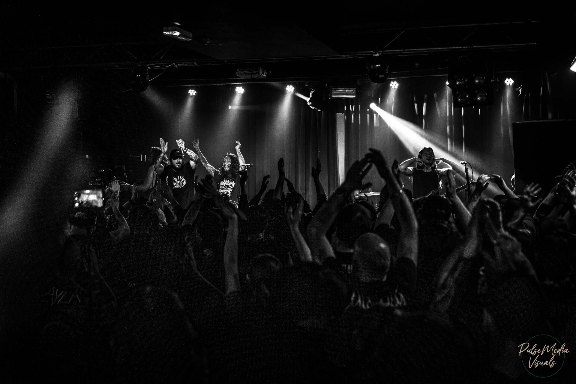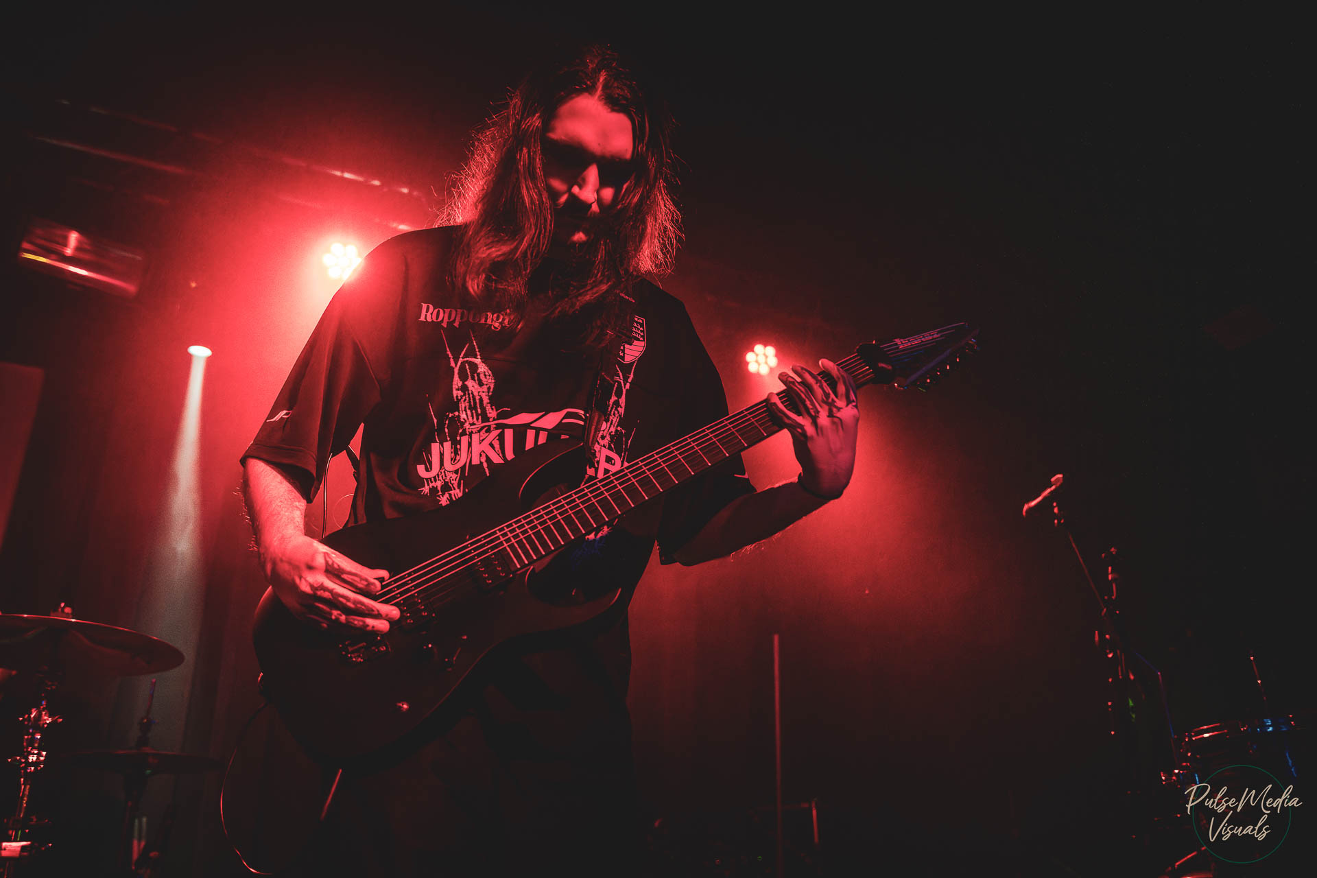 The first band of the night, Disect, hit the stage. The energy in the room didn’t pick up at first, but it didn’t stop the band from giving it their all. Ridiculously heavy track after heavy track was blasted through the amps on stage into the crowd, with the band doing everything they could to get people moving. After a few songs, the room was slowly filling up, and people were beginning to feel the music much more. After a couple of songs, the band addressed that they were actually a member down too due to an unfortunate case of sickness that had hit the touring party, leaving them to play without the bass live, which unfortunately did leave a noticeable mark on the sound, but I’ve got to give credit where it’s due. With everything that was very clearly going wrong with the show, Disect gave it 110% still and looked the entire time as if they were still having a great time despite the setbacks. I can always respect it when a band handles issues like this without affecting those there to see the show. The band’s sound blended modern metalcore with elements of the genre’s more extreme sides, with many similarities to Thrown. I highly urge people to give them a shot if you’re a fan of chuggy, breakdown-heavy metalcore.