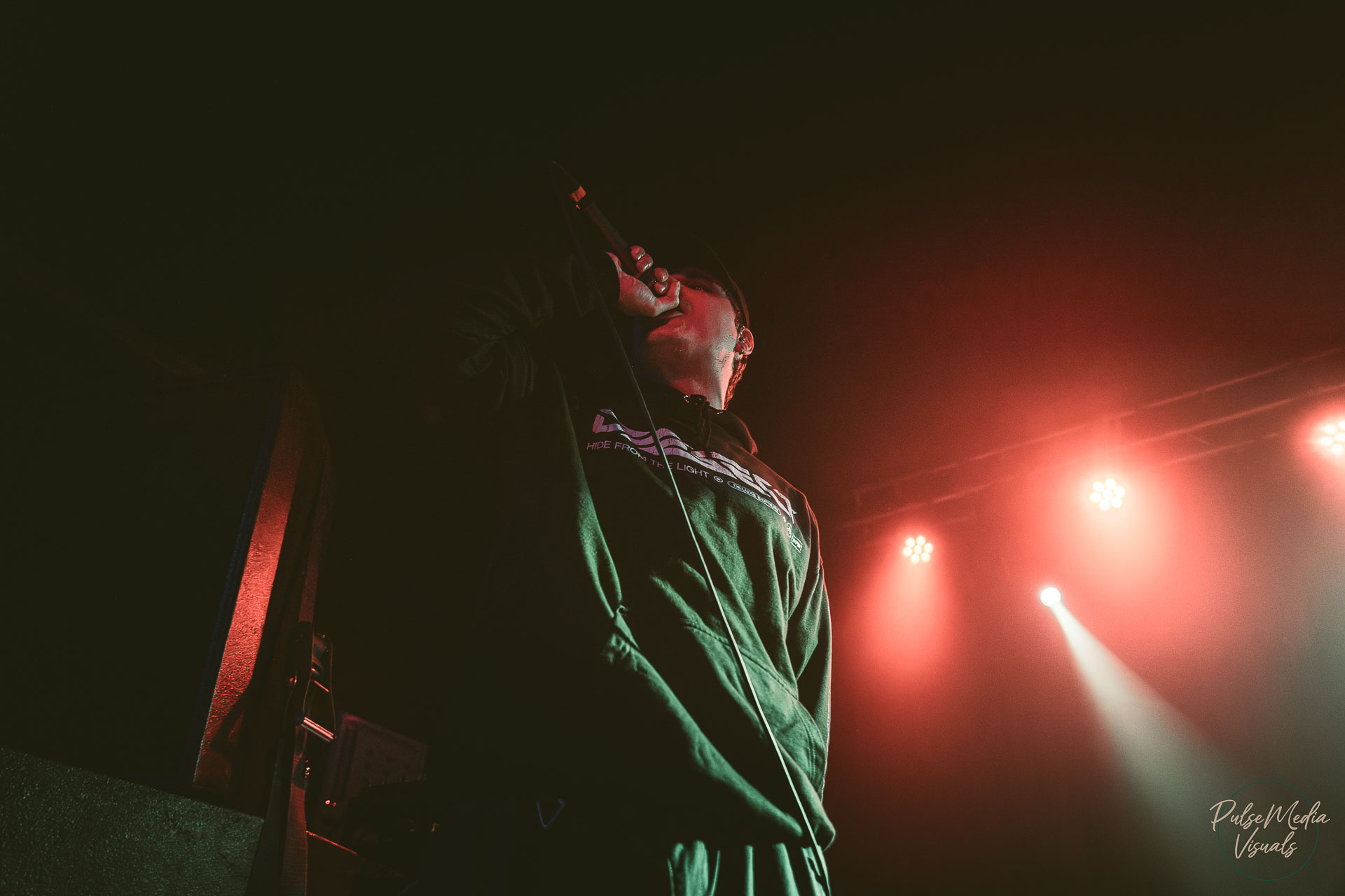 After an incredibly short changeover, Great American Ghost hit the stage (early). I’ve been a massive fan of these guys since I saw them support Polaris and Alpha Wolf in the Academy2 a couple of years ago, and was incredibly excited to get to see them play a stage this small. Immediately, the energy was ridiculous, and the onslaught of riffs and breakdowns flooded the room. Ethan’s stage presence as a vocalist is unmatched, and mixing in the band’s raw, aggressive sound creates an oppressive experience to witness live. The room took a bit of time again to warm up to GAG and get moving, even when prompted by the band, and at times, I could feel some of the band’s frustration, but this didn’t take away from the performance. In fact, I would say it added to it. The music was raw, aggressive, and angry, and with the issues the show faced behind the scenes, I believe this added to the performance in an incredibly real way. The band channelled this frustration and anger into the performance, making it something you truly had to be there to witness. By the end of the performance, though, the crowd had obviously been won over, and Ethan even joined in the circle pit for the closing song of the set, which helped make the room feel connected to the performance, helped make the crowd a part of the band, even for just a short moment. I’m excited to see GAG live again, and I urge everyone to catch them as soon as they can.