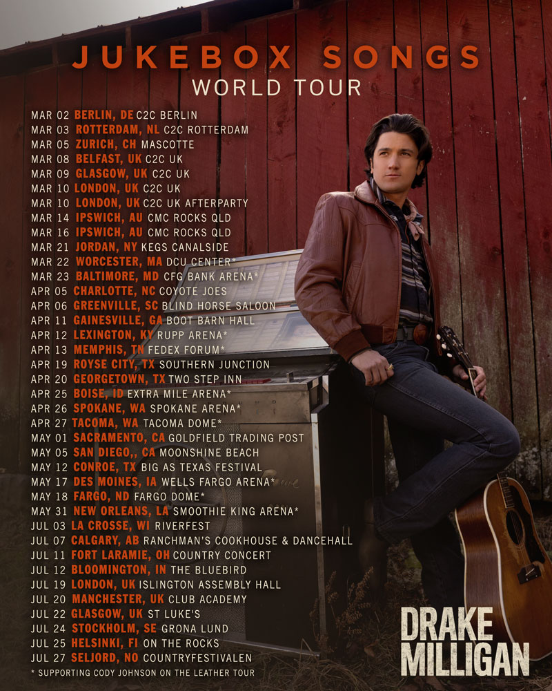 Drake Milligan burst onto the national music stage entering the Billboard Emerging Artists Chart at #5 after dominating iTunes with his debut album, Dallas/Fort Worth, charting back-to-back #1 hits on the iTunes Country Songs Chart, #1 on iTunes All-Genre Chart and reclaimed the #1 spot on iTunes Country Albums Chart, all while simultaneously holding positions #1, #2, #3 and #5 on iTunes Country Video Chart. In the UK, Milligan’s debut album spent 11 consecutive weeks in the Top 20 of the Official Country Artists Albums Chart. A student of classic Country music with the swagger of early Rock ‘n’ Roll, the Fort Worth, Texas native is an electrifying entertainer who cites George Strait and Elvis Presley – the King of Country and the King of Rock ‘n’ Roll – as musical heroes, and his unique twist of traditional Country has been embraced by fans, peers and the media alike. Milligan has performed on The Kelly Clarkson Show, The Grand Ole Opry, Stagecoach and CMA Music Festival, and earned high praise from People, BBC, USA Today, Parade, American Songwriter, CMT.com, Billboard, ET, Access Hollywood, Cosmopolitan, Cowgirl Magazine and Taste of Country. Following his Dallas/Fort Worth debut – named “One of the Best Country Albums of 2022” by Billboard and others – Milligan uncorked a Canadian Country Radio #1 in 2023 (“Honky Tonkin’ About” with The Reklaws), garnered 5 million views in just a few months with “Cowgirl For Christmas,” and headlined the massive New Year’s Eve celebration at the famed “World’s Largest Honky Tonk,” Billy Bob’s Texas, where he had also delivered two sold-out homecoming shows in the previous year. Looking ahead, the Stoney Creek Records phenom has dropped “Don’t Leave Me Loving You” – a timeless heartbreak ballad with a modern edge. His latest EP release titled, Jukebox Songs, features four all new tracks and was released on Friday, February 16. The acclaimed “Artist to Watch” (CMT, Pandora, etc.) also returned to his primetime TV roots for the America’s Got Talent spin-off show, America’s Got Talent: Fantasy League and hits the road alongside Cody Johnson on his 2024 U.S. arena tour.