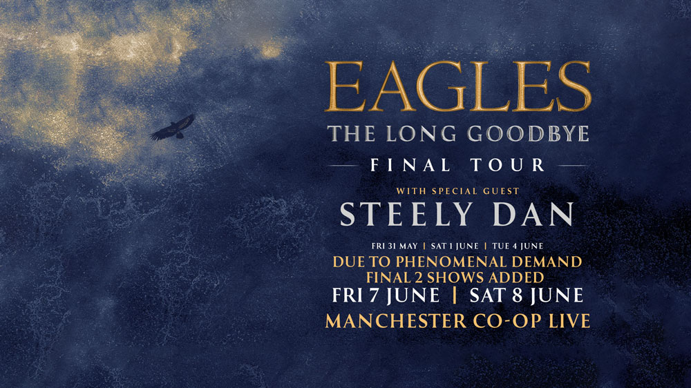 [LONDON, U.K. Thursday 25th January 2024] Due to phenomenal demand, the final two shows have been added to the Long Goodbye Tour. The Eagles – Don Henley, Joe Walsh, Timothy B. Schmit, with Vince Gill, and Deacon Frey, announce a UK residency at the new Co-op Live arena in Manchester as part of their acclaimed ‘Long Goodbye’ tour. Performing at the largest indoor Arena in the UK, The Eagles’ long-time contemporaries and fellow Hall of Famers, Steely Dan, will join these historic shows and commemorate their own 50+ year career. Tickets go on general sale on Friday 26th January at 10 am via Livenation.co.uk.