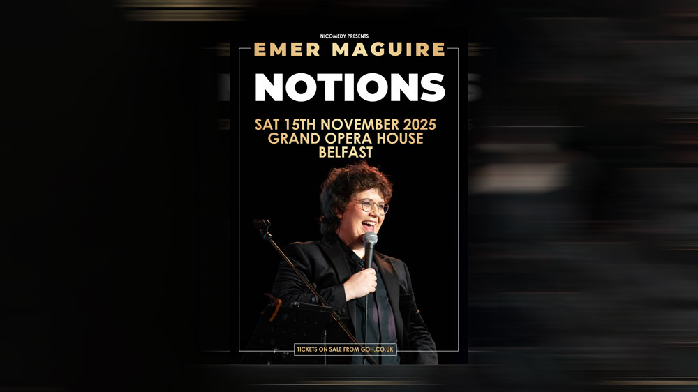 Tickets on sale Friday at 10am from goh.co.ukEmer Maguire is back with her brand new stand up show, Notions. This will be Emer’s biggest show yet as she takes to the stage in the Grand Opera House. Don’t miss out on Northern Ireland’s brightest musical comedy star.