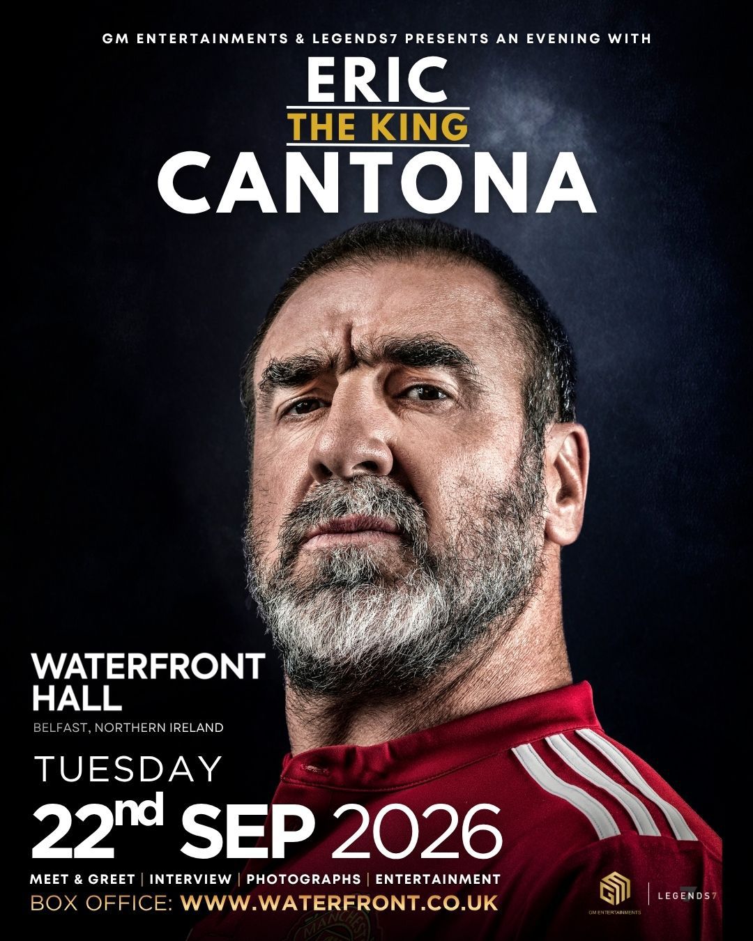 ERIC CANTONA LIVE AT WATERFRONT HALL., BELFAST ON TUESDAY 22ND SEPTEMBER 2026 | ON SALE NOW