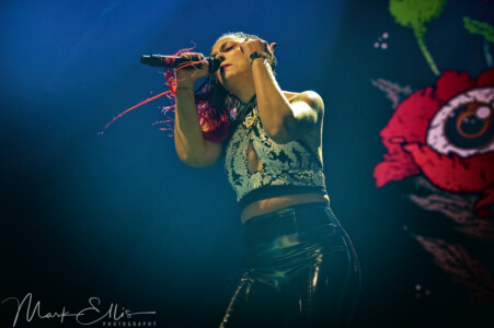 Up first is Veridia who is another strong female-led band. Prior to this tour, I have to admit that they had not hit my radar but after a quick preview on Spotify, it’s clear why these guys are opening the tour. Starting with “Blood Diamond” there is a strong middle Eastern influence to their sound which is exemplified when Deena Jakoub drops her mic and picks up some LED fans to dance with. She is a powerhouse of a frontwoman and vocalist as she gets the crowd warmed up between songs and showcases her vocal range during them. There is no doubt that these guys have a strong metal sound but the backing tracks and melodies in the vocals make this stand out as something special. Amy Lee certainly thinks so having invited the band on the tour and also joining them on stage to play the piano for “I’ll Never Be Ready” which Jakoubs explains is a song close to her heart as it’s about the loss of her dad and something she bonded with Lee over after she also lost her brother. After a heartwarming moment like that Jacobs knows that they need to pump the energy back up and with the crowd clapping along gives us “At the End of the World” and “I Won’t Stay Down” to close the set.