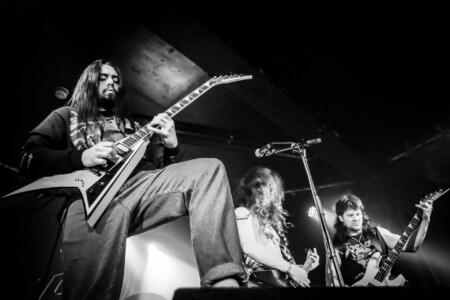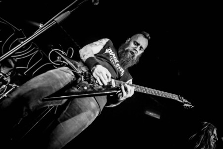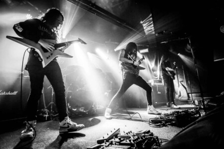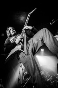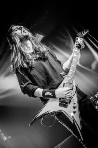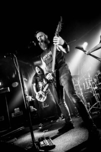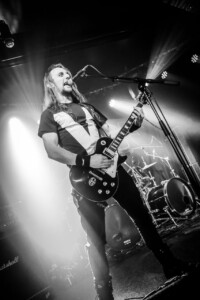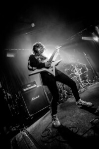 The crowd is going nuts, the lunatics have definitely taken over the asylum tonight as the mosh pit goes wild. It’s been busy all night sit with Evile’s brutality feeding them they don’t seem to want to stop.The guys take us on a musical journey from tracks off their recent release ‘Hell Unleashed” right back to their earliest stuff off their demo’s we are treated to a whole barrage of classics. Frontman Ol Drake often interacting with the melee below encouraging their chaos and making sure they’re all on their best behaviour, Evile just keep coming at them, 3 frantic thrash tracks one after another keeps the energy levels at an an apocalyptic level! A truly fantastic set, an audience so up for it, and a sound so sublime you could just feel every thrash reverberate through your bones it was a glorious nights music topped off by one of the UK’s finest thrash bands over quite a few years. Well played lads!