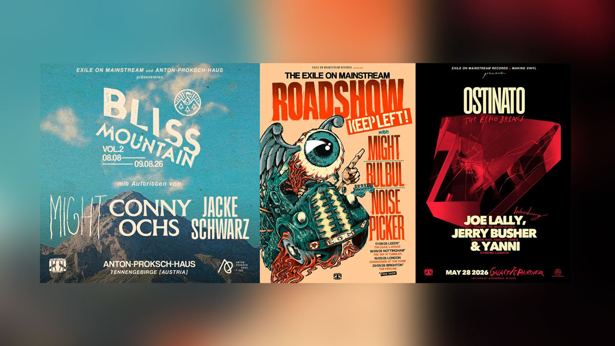 Ahead of the previously announced Love.Noise.Freedom festival – taking place in London in September and featuring Might, Bulbul, Confusion Master, Endure, and Noisepicker (tickets onsale) – Exile on Mainstream have announced three more live events.