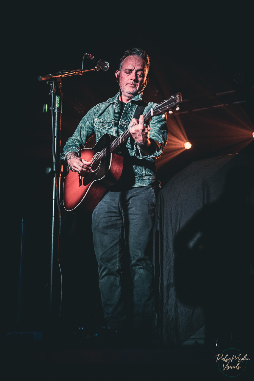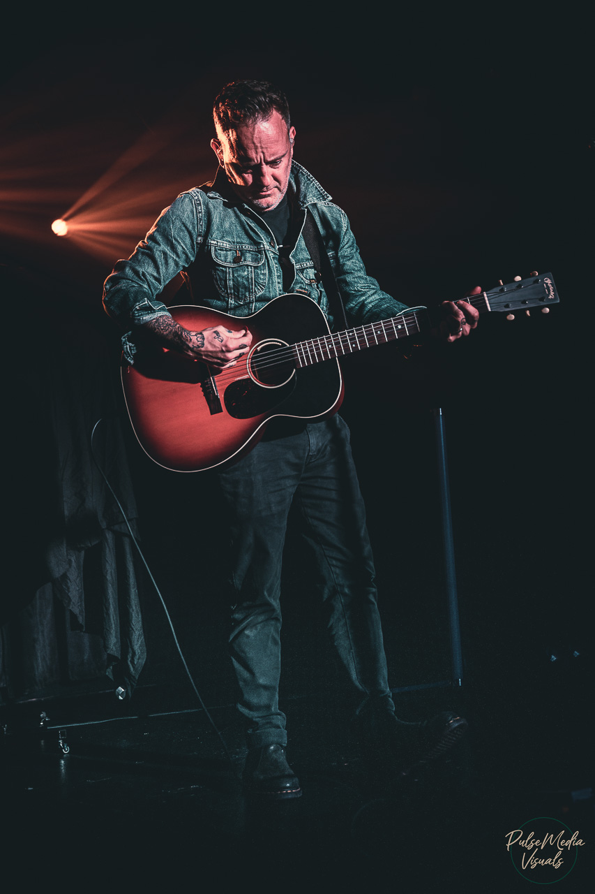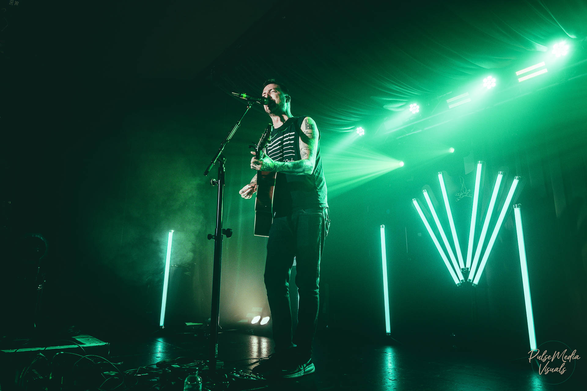 After the final changeover, we had Frank Turner hit the stage. Armed with nothing but a microphone and an acoustic guitar, the crowd were in an uproar of cheers, and the set began. Starting with The Ballad of Me and My Friends was incredibly fitting for the night, as that’s exactly what the show was: a room of strangers all becoming friends for a small collective moment. There’s something special about seeing Frank Turner play live: the way he champions the messages in his songs, how down-to-earth he is at every moment of a performance, and the way he respects the audience are things I truly haven’t seen anywhere else. As a massive fan, the setlist was incredible, pulling out deep cuts such as Our Lady of the Campfires, a track he hasn’t played live since 2020 and was performed as a request by an attendee on his 200th time seeing Frank live. Throughout the set, there were moments that felt more like a convention panel, with Frank talking to the crowd about trivia about the songs and his life. There were a couple of emotional moments throughout the performance, too, both for me and others in attendance. One was during Somewhere Inbetween, a song about never quite fitting in and feeling like you’re just in this in-between space, something that resonated with me when I first heard it on Undefeated and made me reflect on what it was like coming out as Non-Binary in 2018, and how that was the first time I was able to truly be myself. Another was during Get Better, off of Positive Songs For Negative People, and within the roaring crowd, I had this quiet moment of contemplation and reflection on my life, and the changes I’ve made over the past few years, from leaving a job that was killing me, to my growth within photography and even in my general outlook on life. It was a moment that I’ve never had at a show before, and one I believe shows the true strength of Frank Turner’s music, especially live.