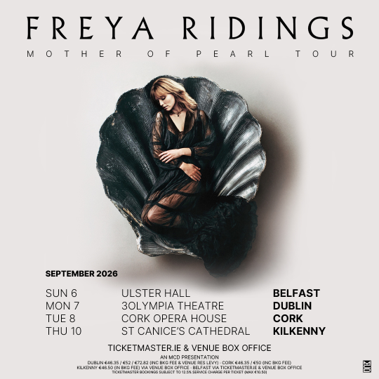 Following the announcement of her forthcoming album Mother Of Pearl (out May 29th on BMG) last month, Freya Ridings has also announced a massive UK and EU tour, including shows at Ulster Hall, Belfast on 6th September, 3Olympia Theatre, Dublin on 7th September, Cork Opera House, Cork on 8th September 2026 and St Canice’s Cathedral, Kilkenny on 10th September 2026.
