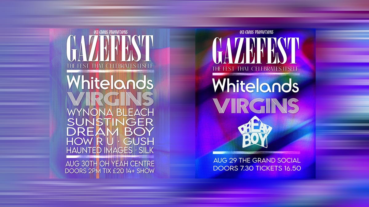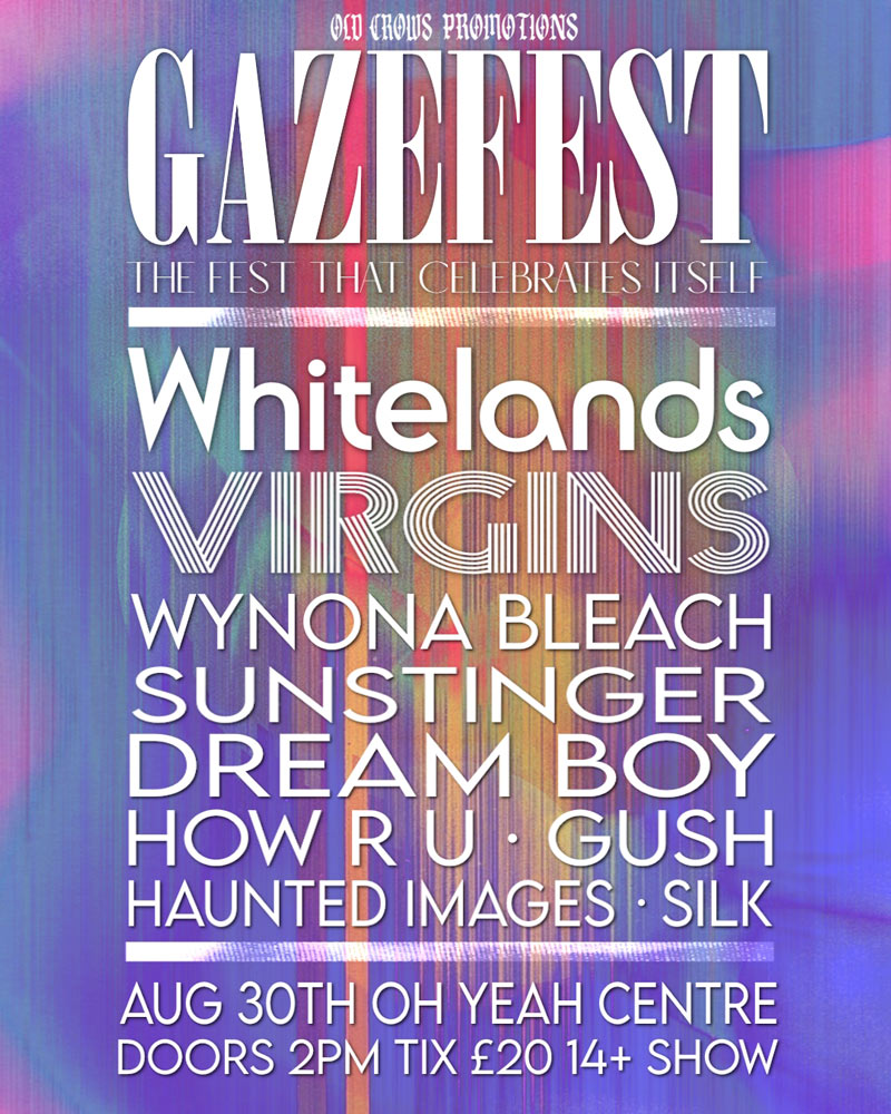 The second date on August 30th is the main event being held in Oh Yeah Centre, Belfast and boasts a massive 9 band line running from 2pm-11pm. Accompanying headliners Whitelands are Virgins, Wynona Bleach fresh off a second SxSW jaunt, Sunstinger return for a second year to bring their heavy gaze, Dream Boy make their Belfast debut, How R U make their GazeFest debut with their lofi slowcore, Gush return for a second year following a run of successful releases, Silk make their debut at GazeFest and the dense sonic soundscapes of Haunted Images opens the day!