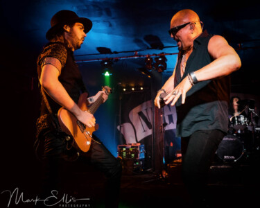 Up next are the fantastic Daxx & Roxane and it’s been a few years since I last saw these guys so it’s been a set I’ve been looking forward to. Their fast-hitting bluesy music is always guaranteed to get you moving and the guys themselves are mesmerising to watch. The whole band bounces off one another’s energy and you’re never quite sure where to watch. Even if New Wave Of Classic Rock isn’t your thing, these guys will bring a smile to your face and have you clapping along in no time. You have to wonder where they get the energy to run around the whole time but it’s the fact that they never miss a beat the whole time that’s really impressive. Playing hits such as “A Strange Woman”, “Breathe” and new track “Grind’, the crowd are taking in every second of this set. There is of course one trick at every Daxx & Roxane show that you don’t want to miss and it’s the incredible jump performed by guitarists Cal Wymann and Simon Golaz over one during “Wrong Side”. Even if you know it’s coming, it’s still an impressive sight to see as they continue playing throughout it. Another highlight of the set is during “Fast Lane” which sees Golaz swapping places with drummer, Luca Senaldi, seamlessly to play himself for a few seconds and later climbing up into the kit himself with some extreme balancing skills. Both the band and crowd are enjoying themselves so much that the guys even manage to slip in one extra track at the end with “Hard Rockin’ Man” to try to satisfy that need for more. These guys aren’t just a support band but a highly energetic party band on the rise!