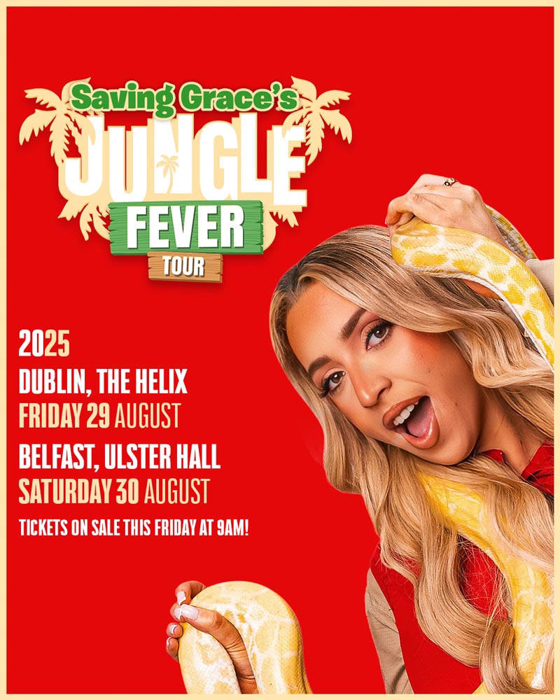 GK Barry is back with her brand new ‘Saving Grace’s Jungle Fever Tour’ coming to Dublin and Belfast This August 2025.