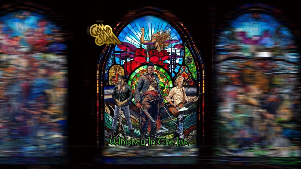 “He was a gifted man, a keen reader and writer, and I believe that’s the true path he would’ve chosen to go.” Dyer concludes, “I could imagine him walking into the Roundwood Inn in the Wicklow hills for a swift one, before he returned to his estate and writing. His pen was his sword. Phil would’ve been a true asset against knife crime in the UK, also he was never scared to say what he thought. He was a great communicator and cared. People who care in the rock ‘n’ roll industry are rarer than unicorns.” Recorded at Chapel Studios in Lincolnshire, the track was mixed by Laurence Archer, engineered by Peter Rietkerk, and the cover art features a stained-glass style painting courtesy of Paul Hallewell. Succeeding heavy metal giants Metallica and using the innate knowledge that Archer had from his creative connection with Lynott as a springboard, Grand Slam have produced one of the most compelling and heartfelt covers of this Thin Lizzy classic heard yet. Watch/Listen to ‘Whiskey In The Jar’ here – Video Directed, Produced and Edited by Paul M Green.