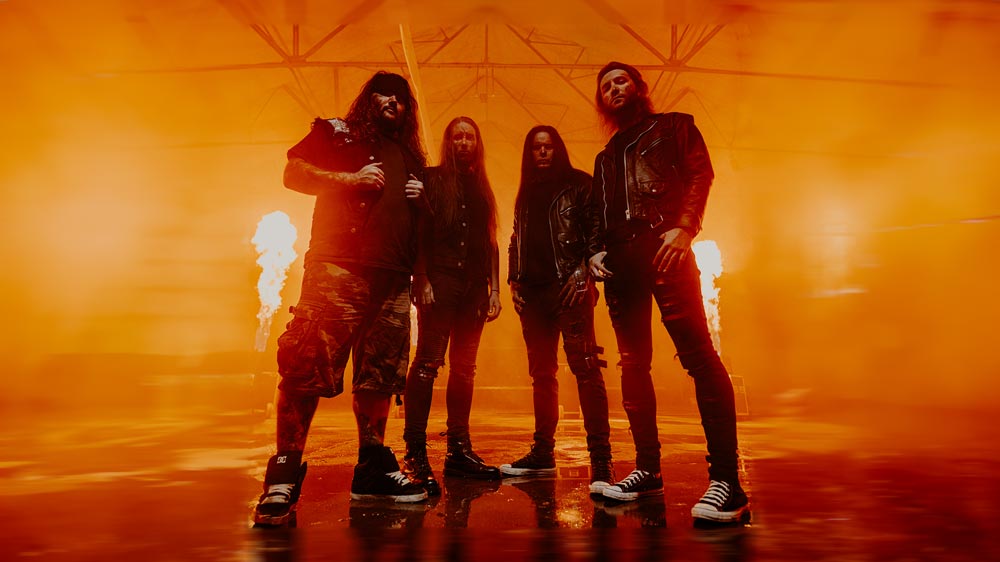 This year, the unstoppable quartet have stepped up another gear and so far have released two thunderous singles, Beneath The Veil, with its accompanying video , and more recently, War Is All . Both tracks have captured the imagination of current followers, new fans, and music tastemakers. HELLDOWN are now poised to drop their next single and video, March Of The Damned. The track is a burly slab of biting metal that is all consuming. The band remark about the single: ‘“March Of The Damned’ is based around the idea that we’re all slowly walking to our end, regardless of our status or what we die for, we all end up in the same place. This track leans more towards heaviness, rather than speed; it’s a hammer instead of a blade!”