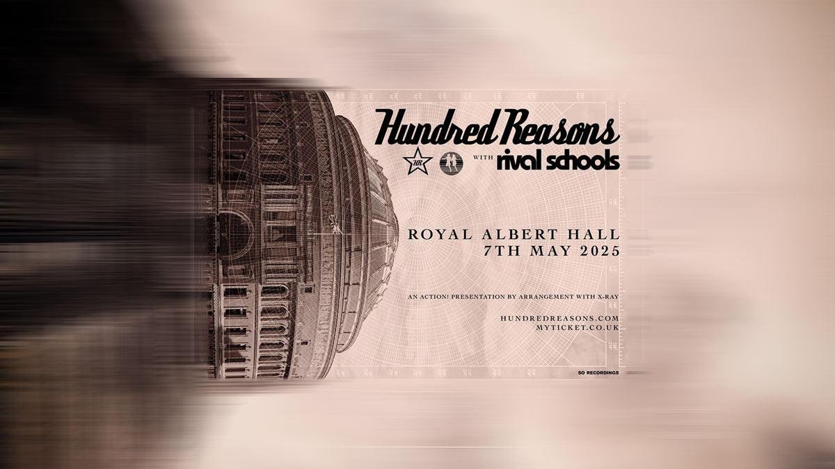 In 2023 Hundred Reasons returned with their critically-acclaimed first new album in 15 years, ‘Glorious Sunset‘ on So Recordings, and a flurry of live activity not seen from the band since their early days. This culminated in their biggest ever London headliner at Hammersmith Apollo. 2025 will mark 25 years since the band’s first show and in celebration of this milestone, the band will take to the Royal Albert Hall for the first time on May 7th, bringing Rival Schools along for the ride.