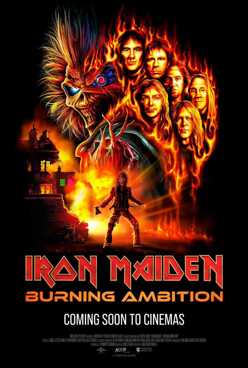 LONDON – TUESDAY 24th FEBRUARY: Universal Pictures International (UPI) today, announces the official title, key artwork and International theatrical plans for the upcoming Iron Maiden feature documentary, now titled IRON MAIDEN: BURNING AMBITION.Documenting one of the most iconic journeys in music history, the film will be released in cinemas in the UK on May 7th 2026. Tickets will go on sale March 18th. Directed by Malcolm Venville (Churchill at War) and produced by Dominic Freeman (Spirits in the Forest – A Depeche Mode Film), the feature‑length documentary charts Iron Maiden’s remarkable five‑decade journey. Alongside the band, the documentary features on‑camera reflections from prominent admirers including Javier Bardem, Lars Ulrich, and Chuck D, each speaking about Iron Maiden’s influence on music, culture and generations of fans worldwide. The newly released key art by Albert “Akirant” Quirantes, offers the first visual look at the documentary. Formed in East London in 1975, Iron Maiden have grown into one of the world’s most influential and enduring rock bands. Across 50 years they have released 17 studio albums, sold over 100 million records, and performed almost 2,500 concerts across 64 countries. The documentary arrives as the band continues its two year Run For Your Lives world tour, which included a triumphant homecoming performance at London Stadium a short distance from where it all began five decades ago. A recently announced, one of a kind, celebration named EddFest in historic Knebworth Park, England, on July 11th forms part of over 50 shows worldwide in 2026. IRON MAIDEN: BURNING AMBITION IS IN CINEMAS FROM MAY 7TH
