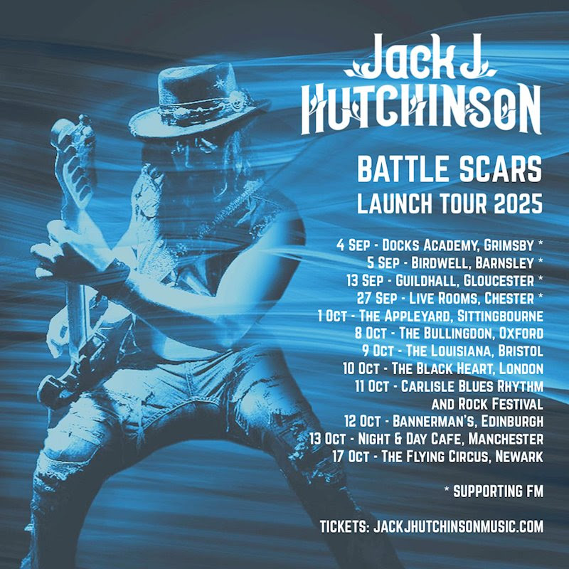 Blues-rock guitarist Jack J Hutchinson will hit the road this autumn with his power trio in support of his brand-new live album ‘Battle Scars’, which is due out early October.