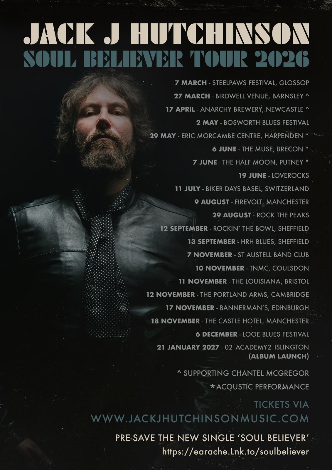 Gritty blues rock guitarist Jack J Hutchinson is pleased to announce his ‘Soul Believer Tour 2026’. He hits the road later this year in support of his forthcoming studio album, ‘Soul Believer’, which lands early next year.