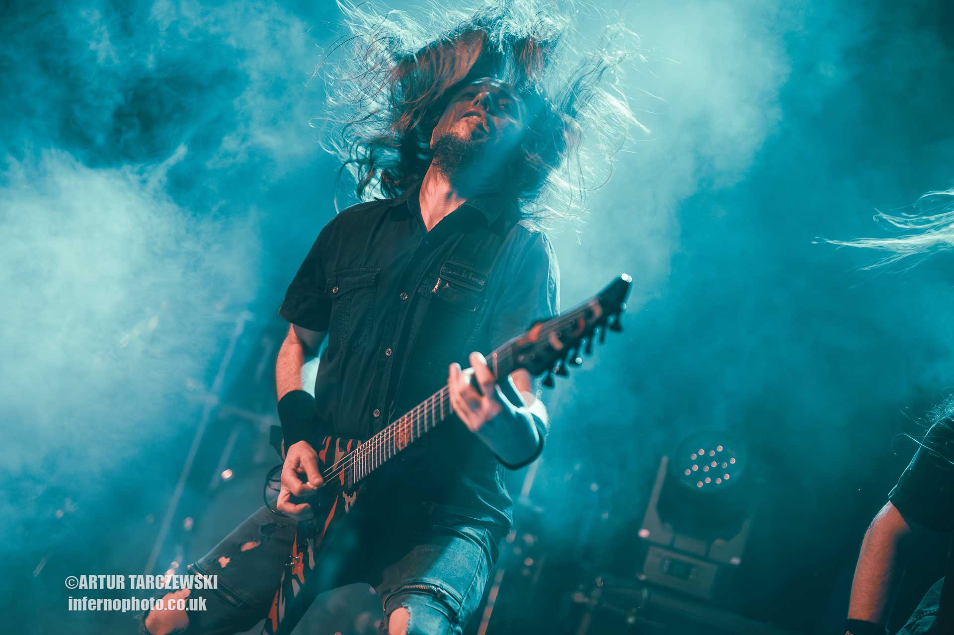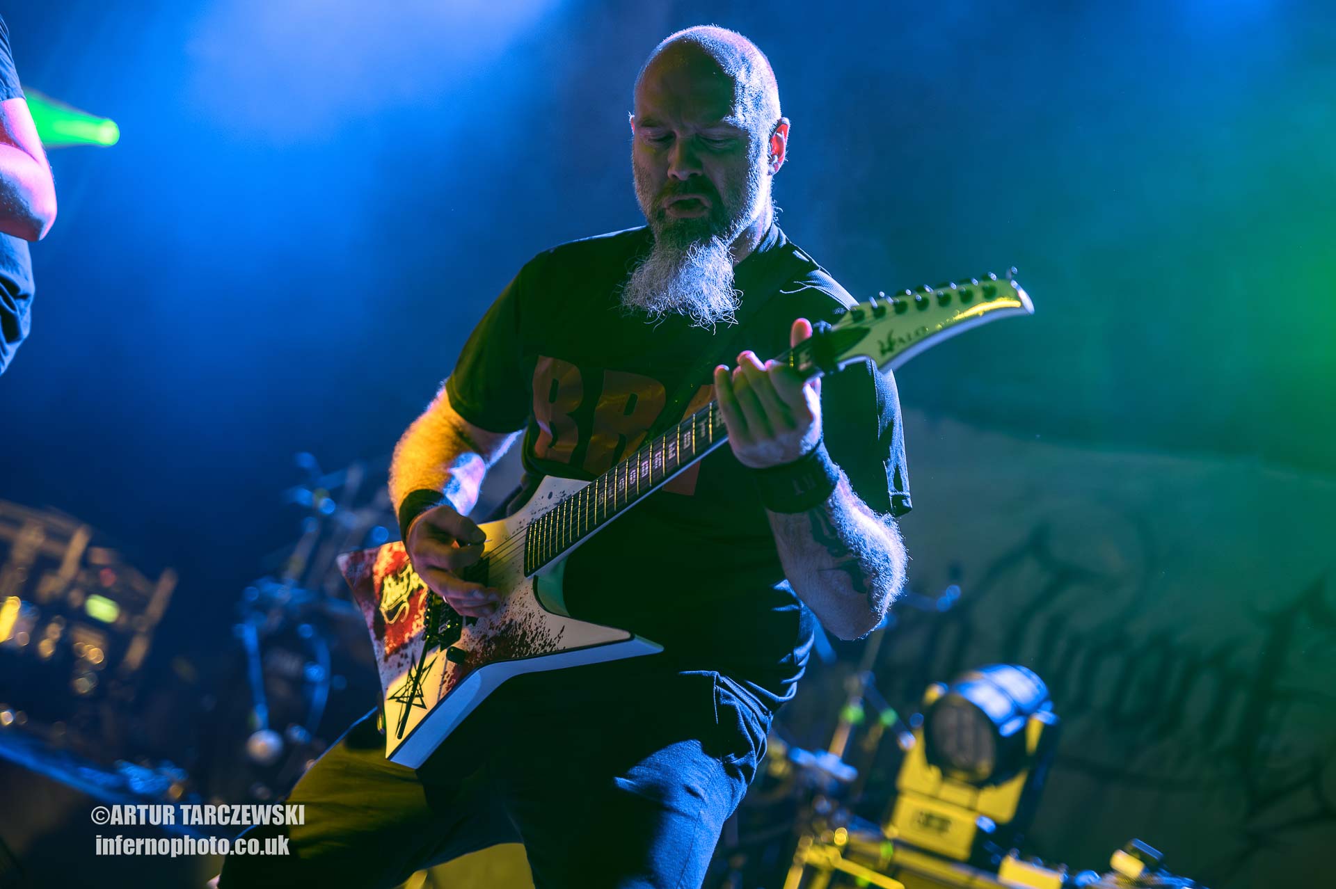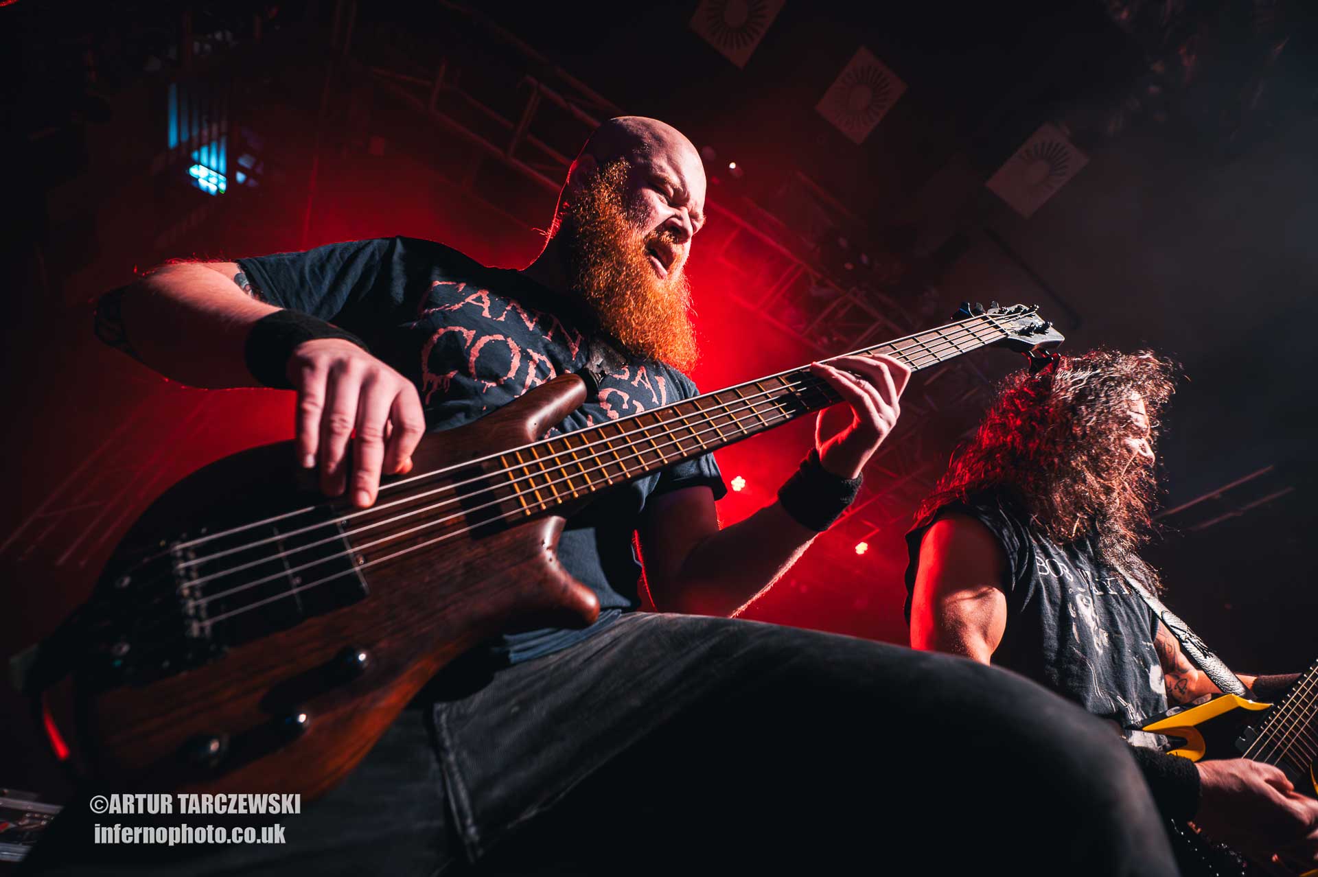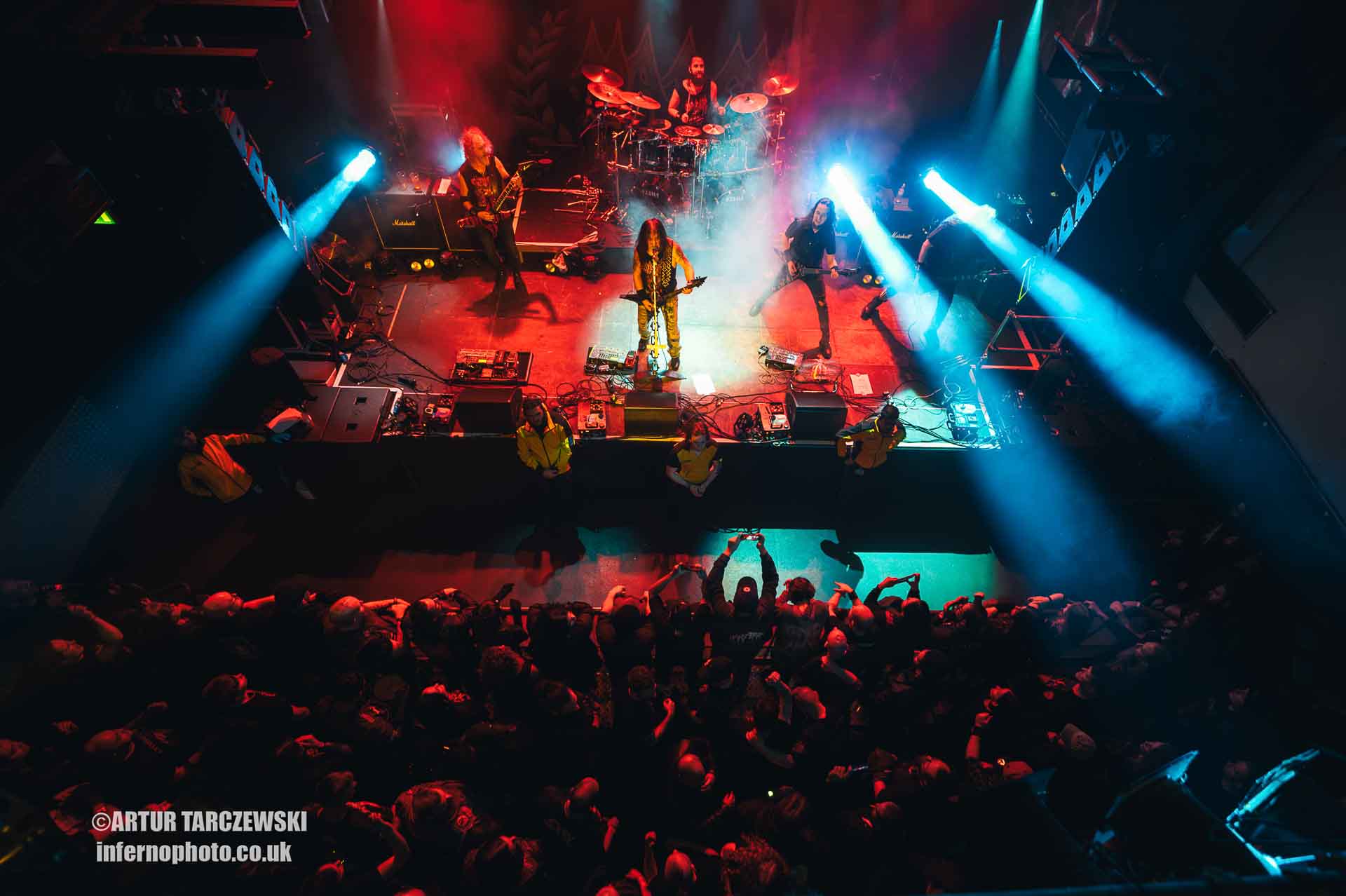 Frontman Piotr “Peter” Wiwczarek commanded the stage like a general leading a battalion into war. Behind him, Marek “Spider” Pająk and Tomasz “Hal” Halicki flayed the strings with an almost surgical ferocity, while drummer James Stewart delivered blast beats that felt like machine-gun fire. The band carved through “Reign Forever World” with merciless efficiency, the crowd answering every verse with howls and fist pumps that could have toppled buildings.