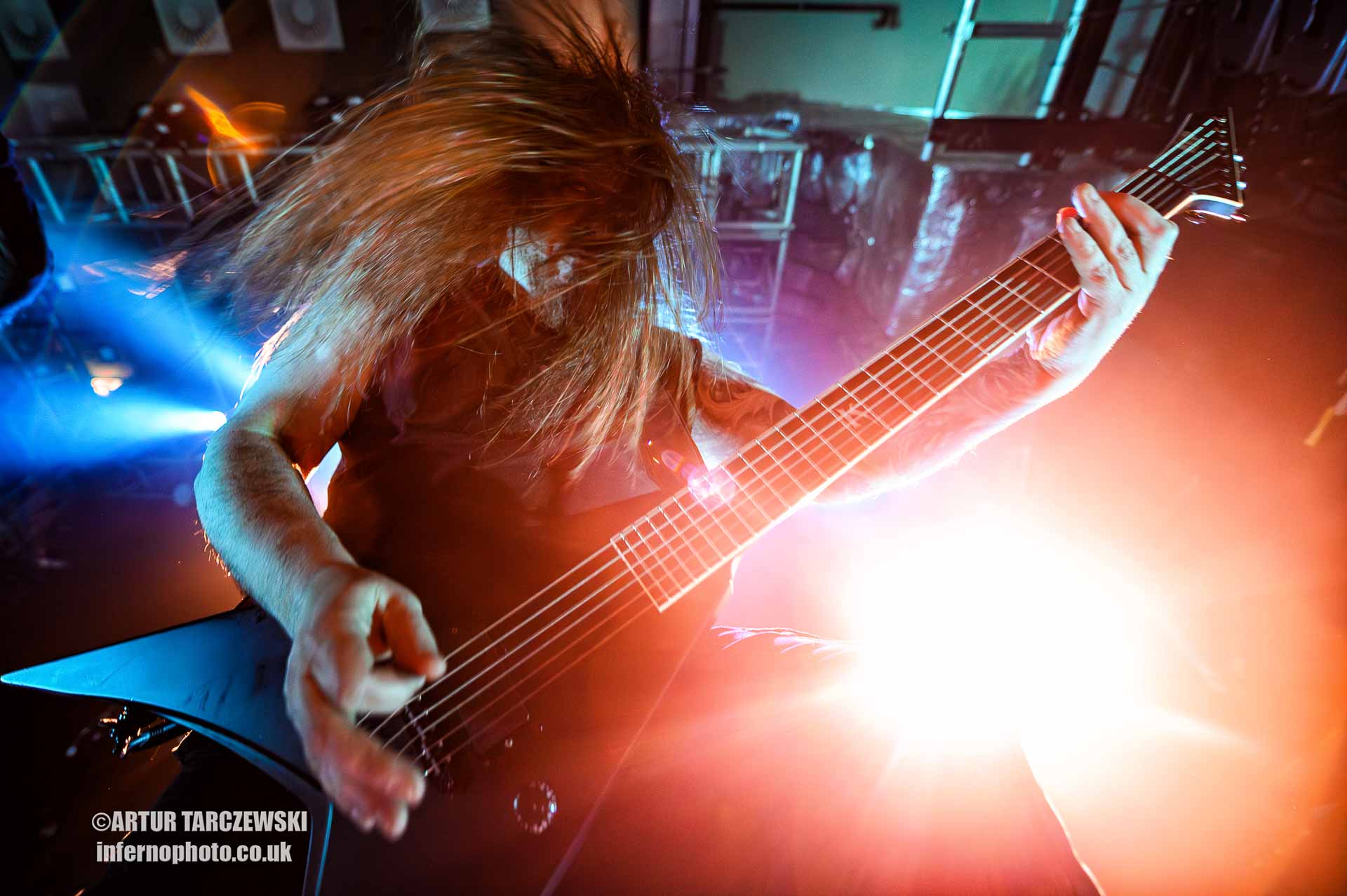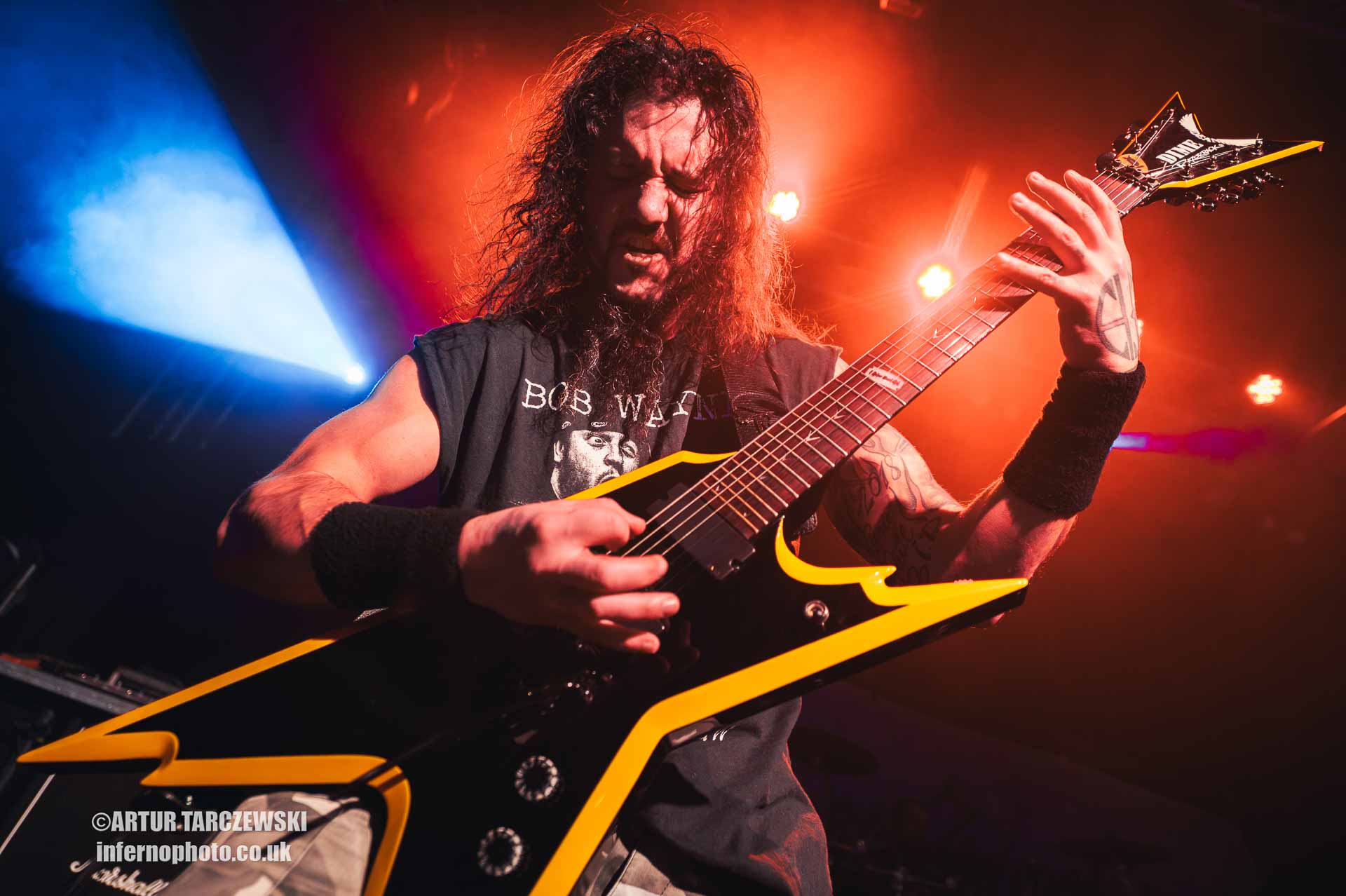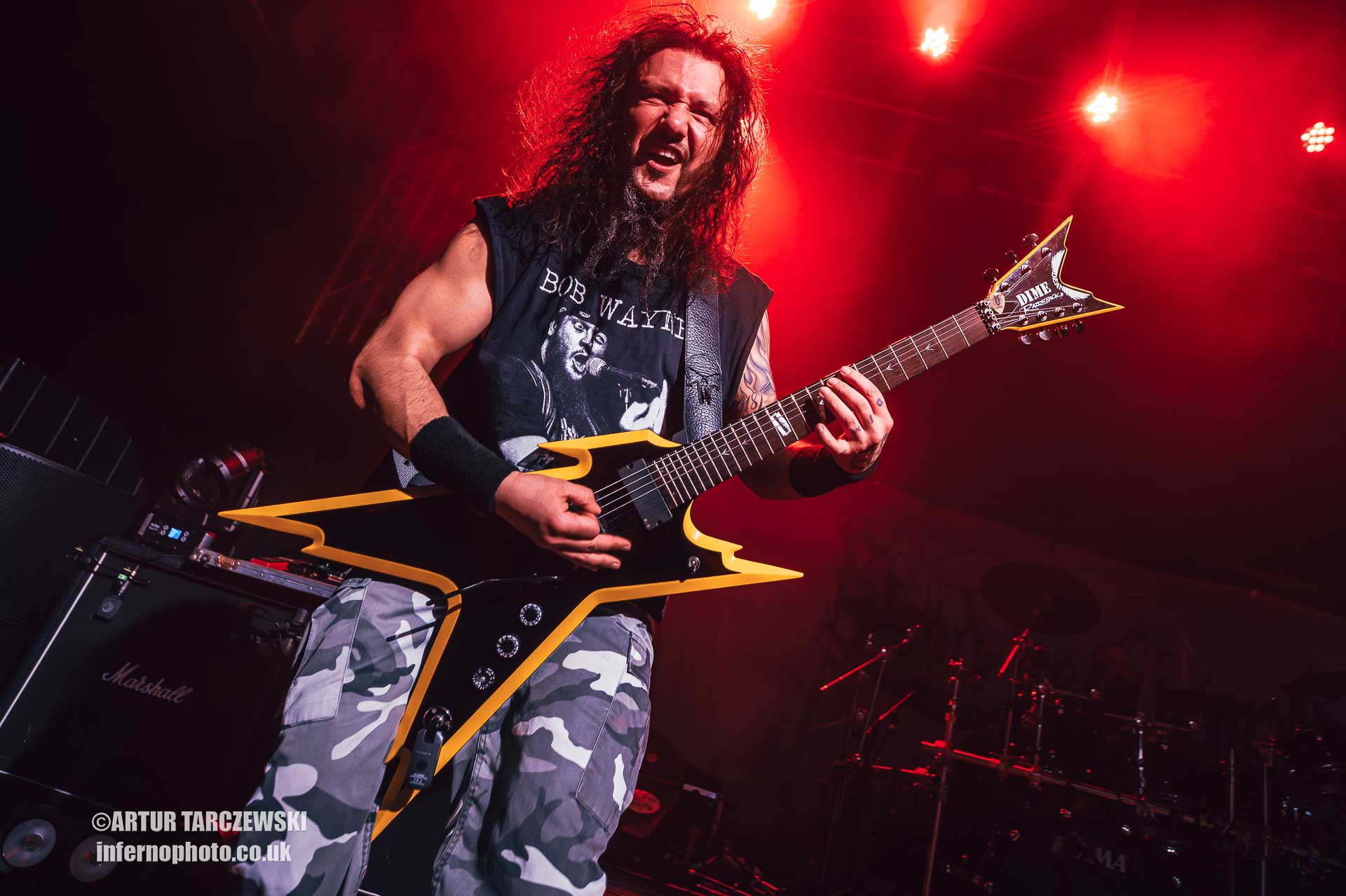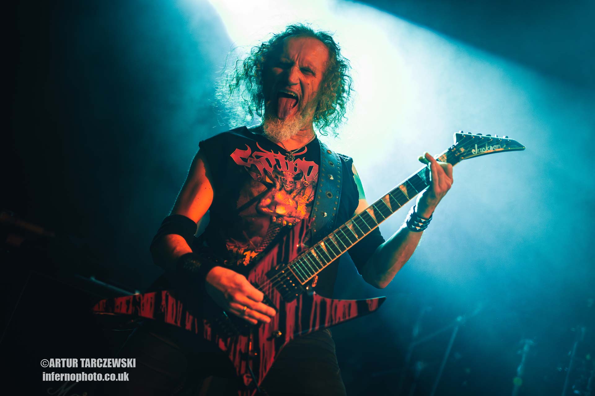 Frontman Piotr “Peter” Wiwczarek commanded the stage like a general leading a battalion into war. Behind him, Marek “Spider” Pająk and Tomasz “Hal” Halicki flayed the strings with an almost surgical ferocity, while drummer James Stewart delivered blast beats that felt like machine-gun fire. The band carved through “Reign Forever World” with merciless efficiency, the crowd answering every verse with howls and fist pumps that could have toppled buildings.