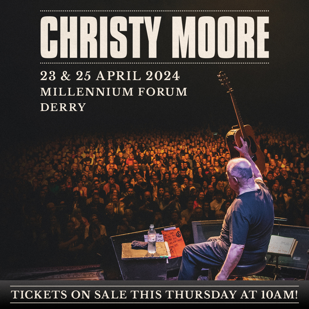 Legendary singer-songwriter Christy Moore will return to Derry next April to play 2 Shows at the Millennium Forum.