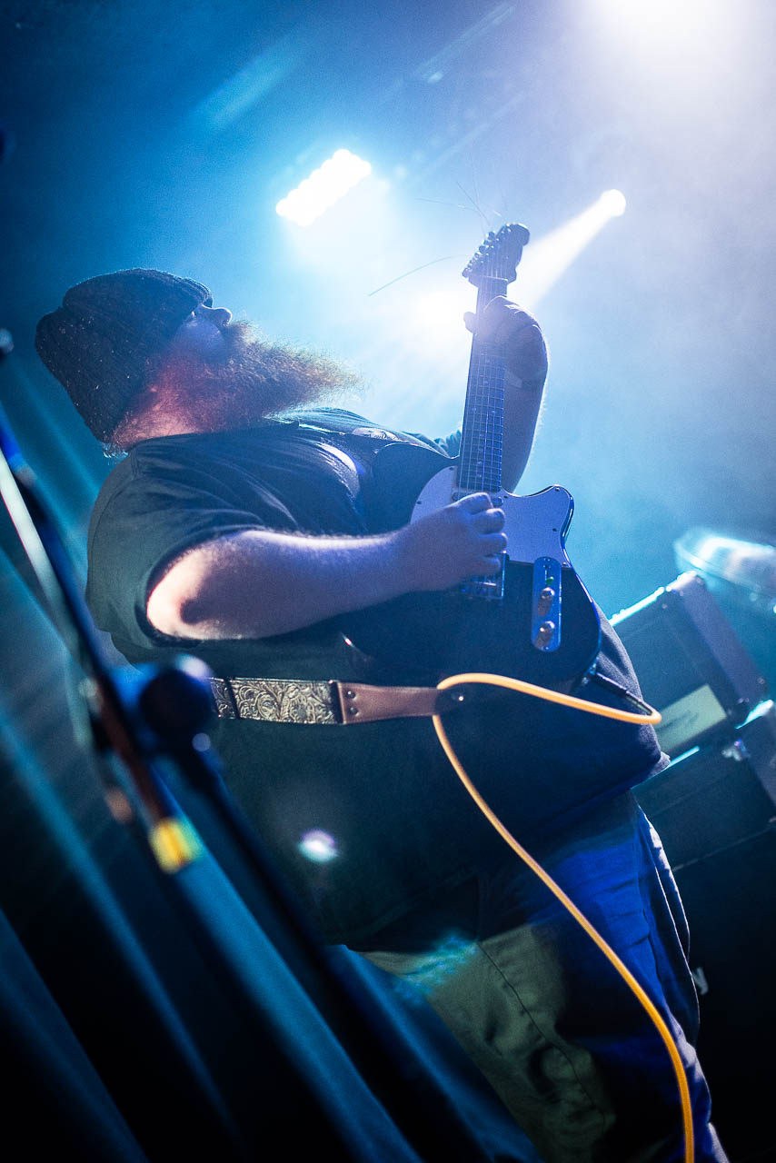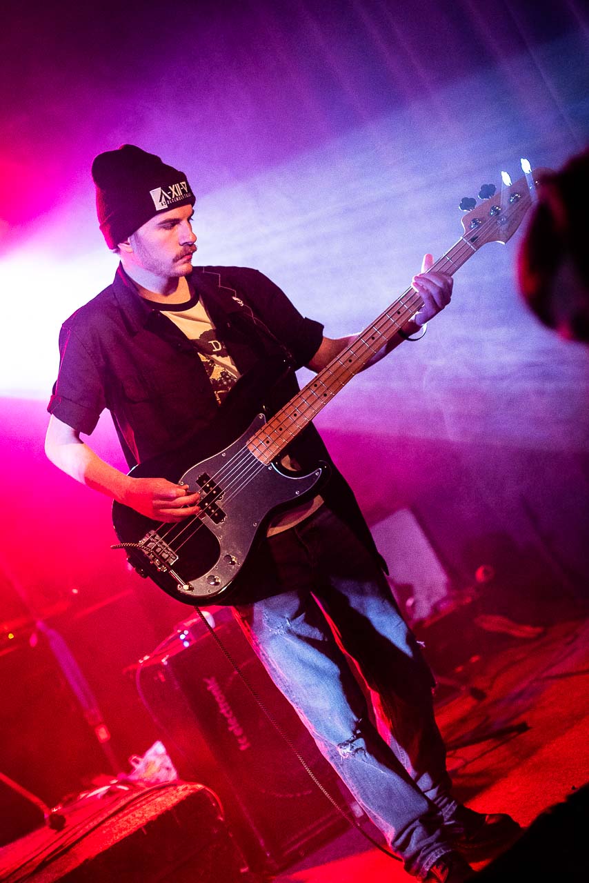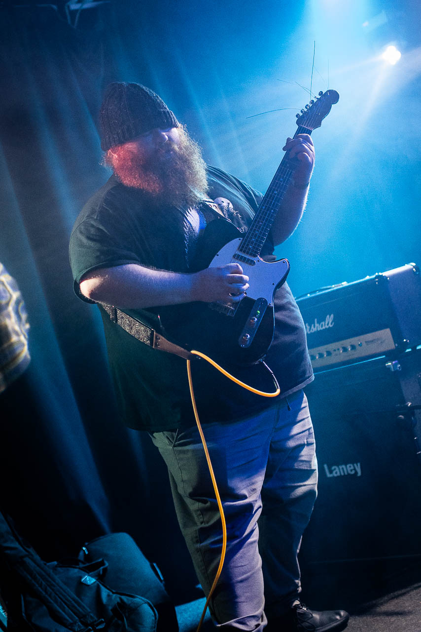 Muted Tweed hit the stage around 9:45, and I don’t know what to expect; their FB page says Mogwai for guys who lift weights! So I am thinking instrumental goodness? Could they be the new The Boat Sank? As it turns out, they could very well be. Filthy instrumental goodness pouring out of their veins, a gnarly three-piece with so tasty riffage, melodic thick goodness all wrapped up in technicality! Me likey! They just get their heads down and lay out a savage performance, hefty riffage, glorious peaks and valleys, allowing their music to breathe as they announce their arrival on the local scene. Gnarly, well thought out and perfectly executed. The stage mob at the end, when the guitarist called everyone up for a rager, was a little unnecessary, but he may have been high on Haribo’s. Overall, I enjoyed what I saw.