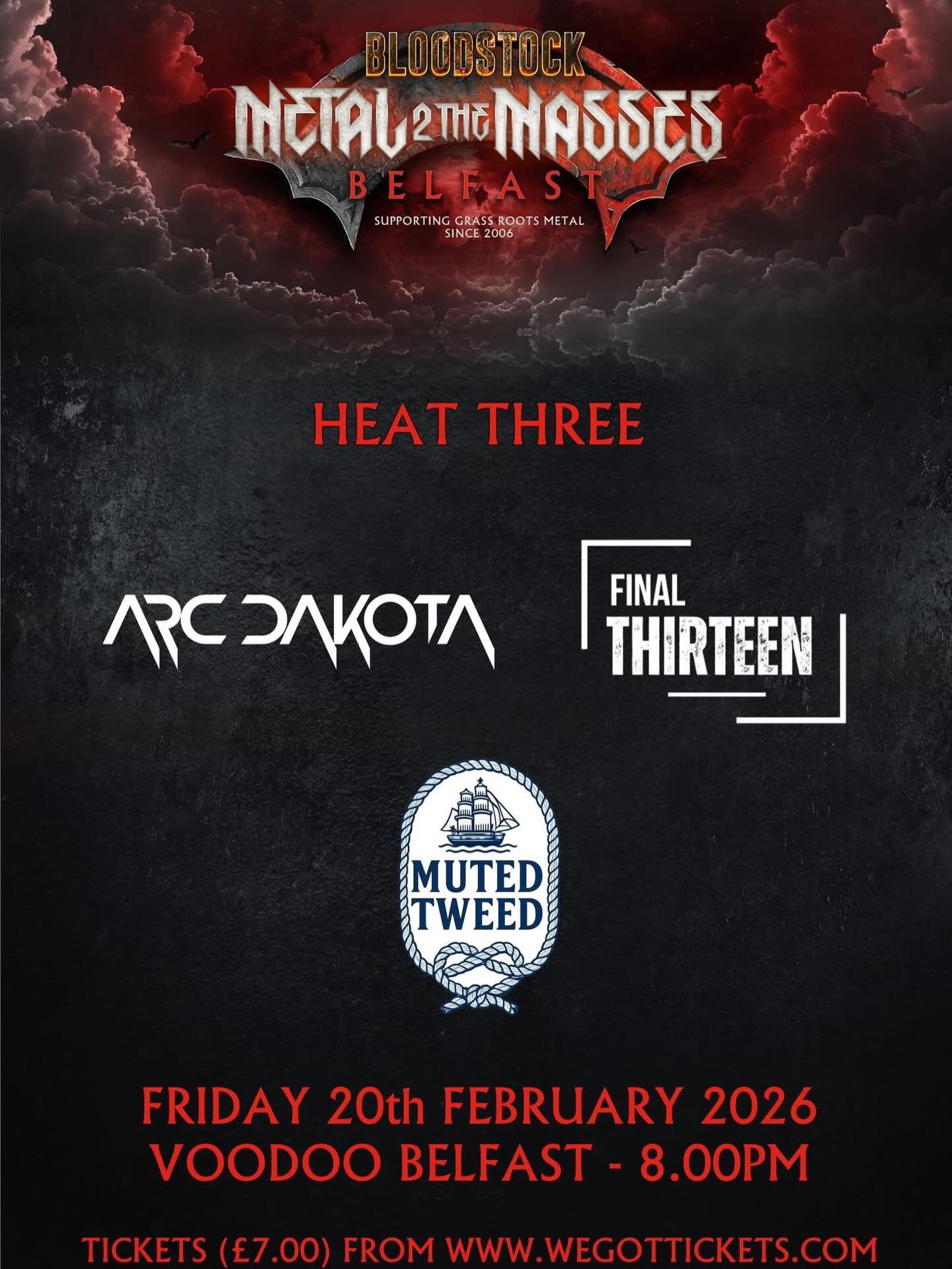 A great night was had by all; three bands took no prisoners and played their hearts out. The man himself, Mr Loveday, said it best: Congratulations to Muted Tweed and Arc Dakota on going through to the semi-finals from last night’s Metsl 2 the Masses NI Heat THREE. We’ve reached the halfway point of this year’s competition, so I’ll be announcing the line-ups for the semis as they stand over the next few days. Thanks so much to everyone who came!