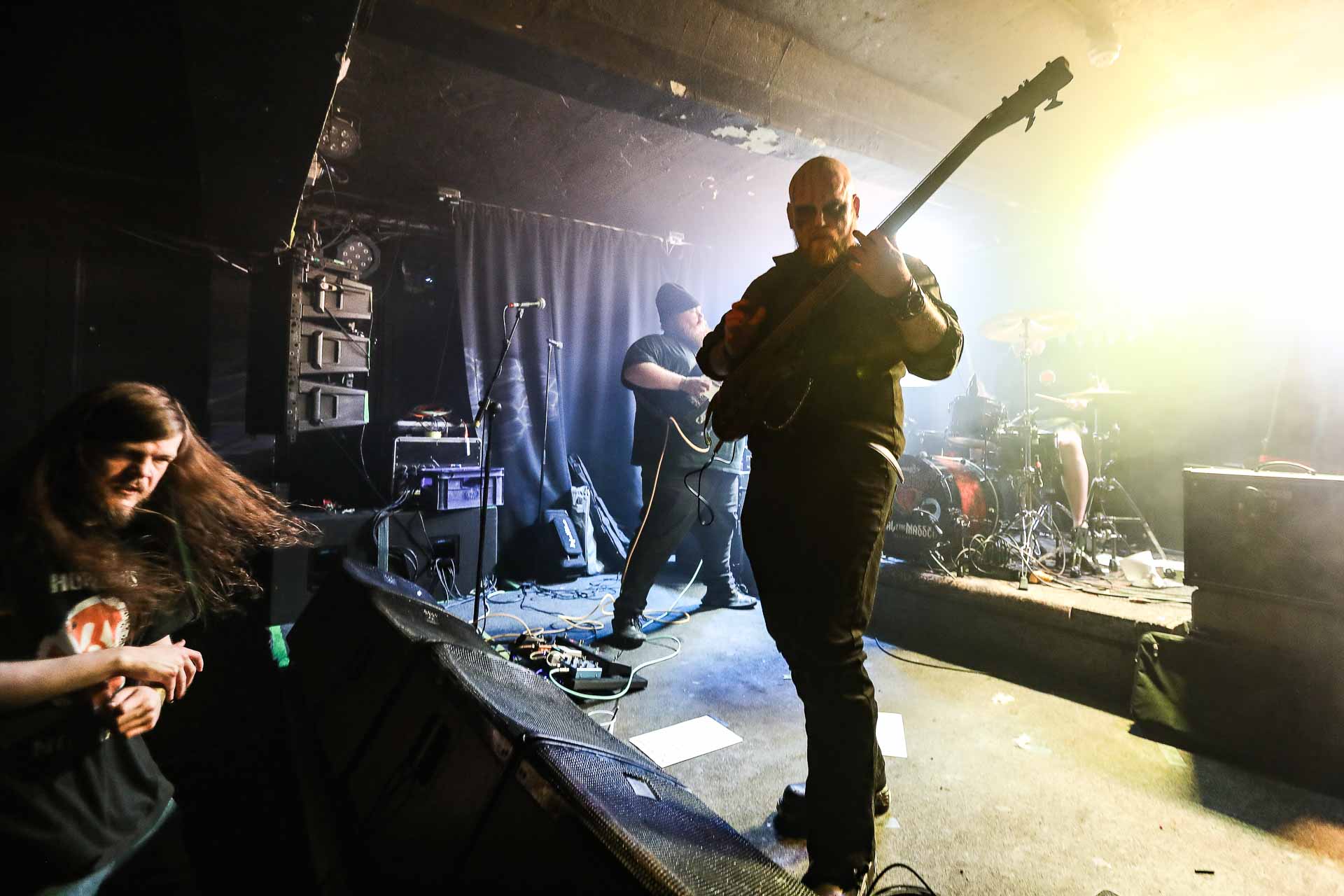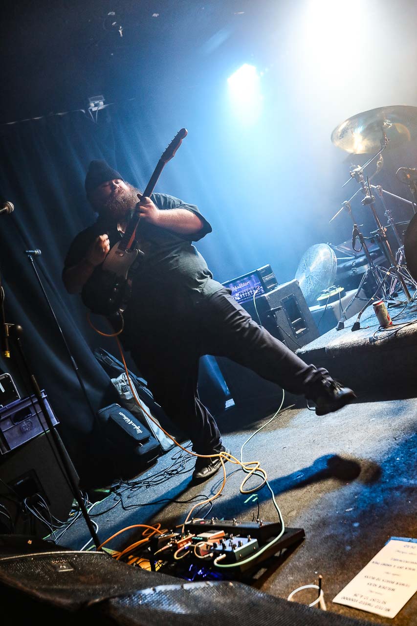 I really enjoyed their Heat set, so it’ll be interesting to see if they have the same intrigue and magnetic charm…. yup! There are droves, the thunderous wall of sound coming from the stage, interspersed with brief melodic breaks, that capture the imagination and squeeze your balls at the same time. What’s not to love! I’ve just clocked that the bass player from Mourning is the bass player too … double shift tonight, boss! I tip my hat to thee …. These guys are epic, I love the energy, the riffage, the ups and downs across the set, never mind in the same song, a lot like The Boat Sank, one of our fave M2TM bands, they crush their set and everyone standing in front of them.